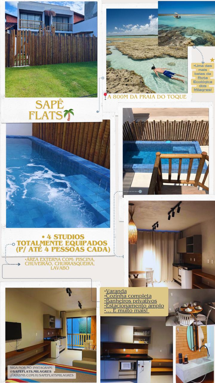 Das Hotel liegt in einer geschlossenen Wohnanlage - MILAGRES PÉ NA AREIA - CHARME-HÄUSER. Absolute Sicherheit und Ruhe. Luxus-Bungalow mit privatem Pool. Ideal für Flitterwochen oder für diejenigen, die guten Geschmack und Privatsphäre wollen. Direkt am Meer von Praia do Toque gelegen, dem besten Strand von São Miguel dos Milagres. In der Nähe von wunderbaren Restaurants. Der Bootsmann holt Sie vor dem Haus ab und bringt Sie zu den unglaublichen Naturpools der Region. Wir bieten Frühstück