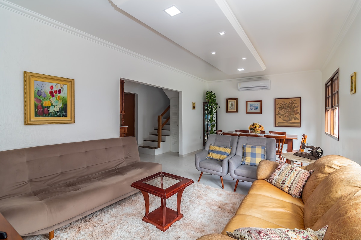 Excelente casa com acesso direto para praia! São 4 dormitórios, sendo 3 suítes, varanda e churrasqueira interligados ao jardim e a piscina. Localizada num condomínio com apenas 3 residências,em uma rua tranquila, com fácil acesso as melhores praias do Norte da Ilha! A cinco minutos de Jurerê. Condomínio exclusivo com caseiro. A piscina e amplo gramado, são compartilhados apenas pelas três residências. Aconchegante,com referenciais mediterrâneos, aqui você pode relaxar com pé na areia!