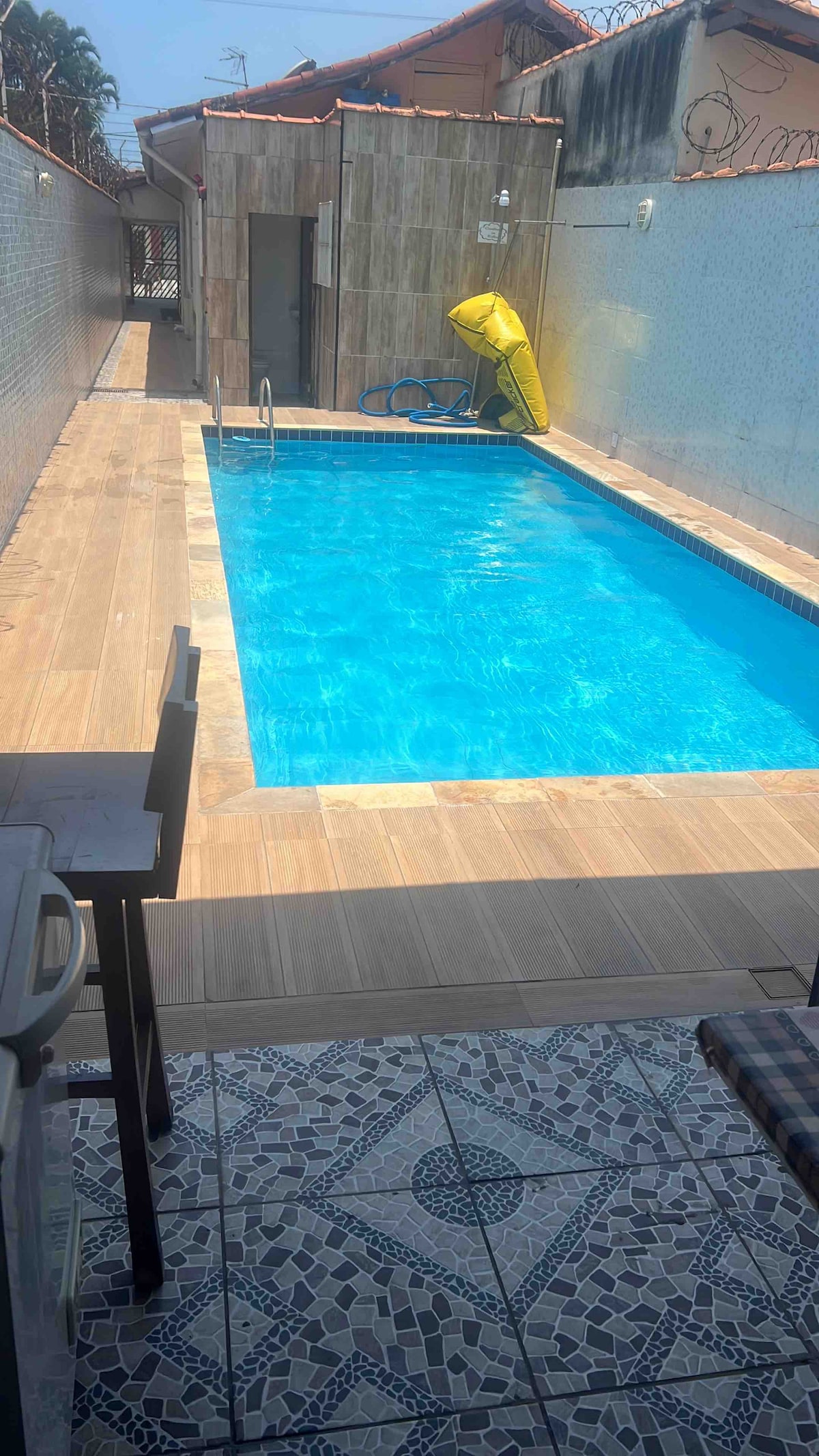 Haus nur 200 Meter vom Strand entfernt, mit Fernsehzimmer (Smart-TV), Wohnzimmer, Esszimmer, voll ausgestatteter Küche, 2 Badezimmern, 2 Schlafzimmern mit Ventilatoren und Schlüsseln an den Türen, überdachtem Gourmetbereich mit Smart-TV und Grill, Swimmingpool mit Whirlpool und Wasserfall, Haus mit Alarm und Elektrozaun ausgestattet, Liegestühle, Sonnenschirm und Kühler, in der Nähe des PM-Bataillons, super sichere und ruhige Militärgegend für deine Familie