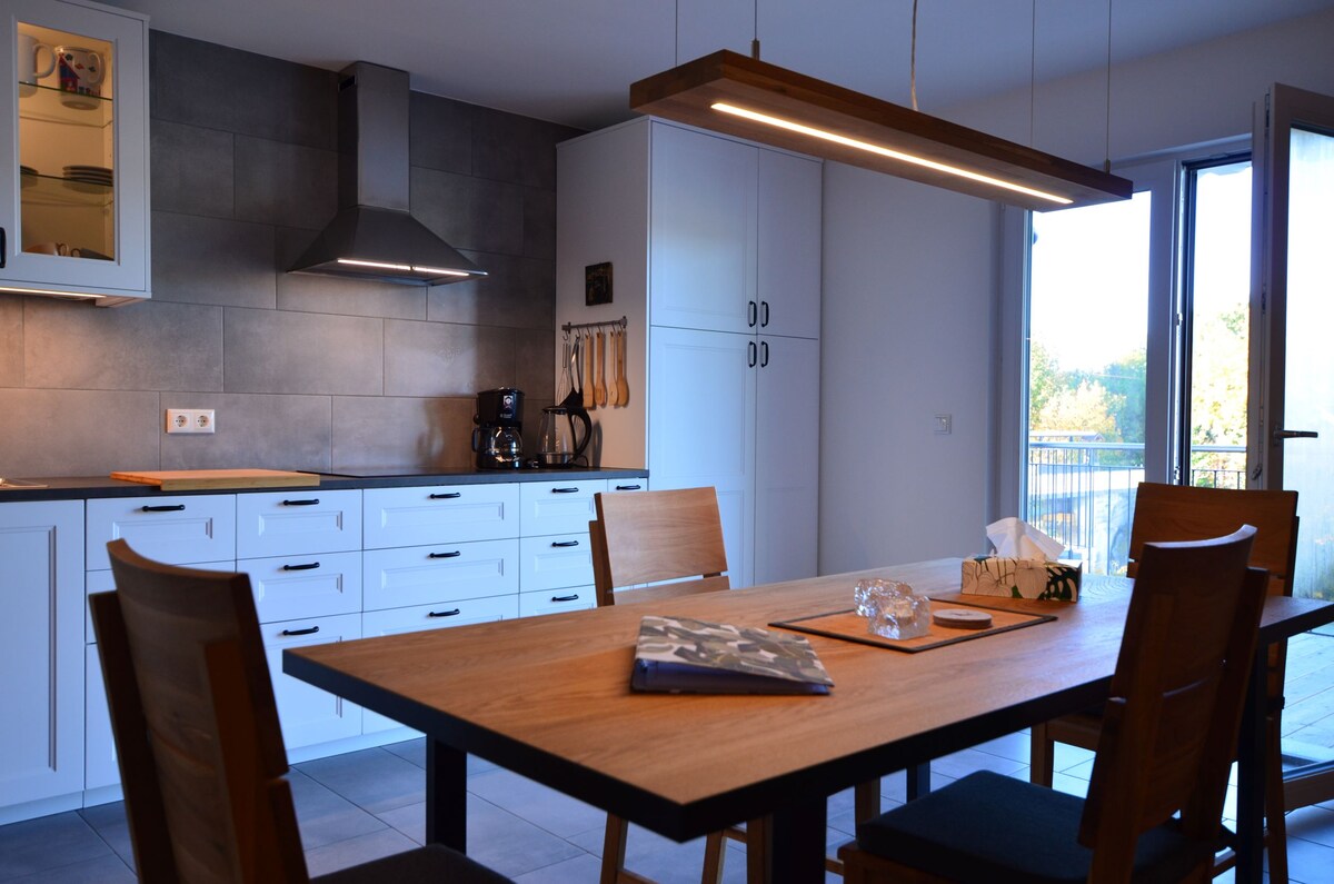 Das im Jahr 2022 fertiggestellte Ferienhaus Sunshine lädt im Apartment Spirit of Deer zur Entspannung und Erholung auf höchstem Niveau ein. Das Apartment zeichnet sich durch einen hohen Ausstattungsstandard, viel Platz und eine angenehme harmonische Atmosphäre in einer bevorzugten Lage aus. Die Fußgängerzone ist in 10-15 Minuten zu Fuß erreichbar und Supermärkte befinden sich in unmittelbarer Nähe. Ein Garagenstellplatz steht den Gästen jederzeit zur Verfügung.