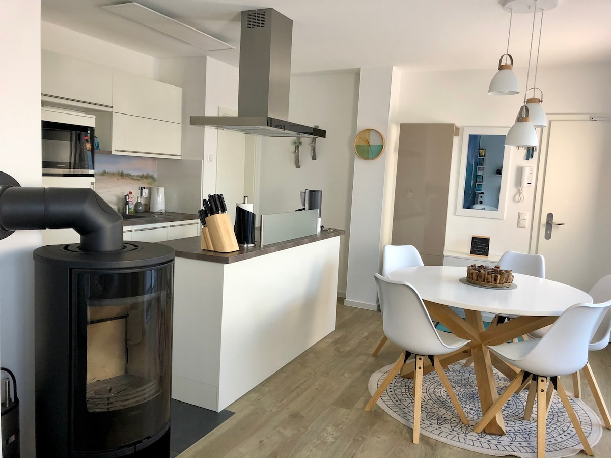 Die Ferienwohnung „Seaside“ liegt ruhig und trotzdem im Zentrum von Prerow in gerader Linie zur Seebrücke. Einkaufsmöglichkeiten und Restaurants in unmittelbarer Nähe. Zum wunderschönen Strand und zur Seebrücke sind es 600 Meter. Diese Ferienwohnung ist 2019 fertiggestellt worden und mit allem Komfort für einen angenehmen Urlaub ausgestattet. Fußbodenheizung in allen Räumen, moderne neue Küche mit Kochinsel, Geschirrspüler, Mikrowelle, Kühlschrank mit Gefrierfach, Herd, Kaffeemaschine uvm.
