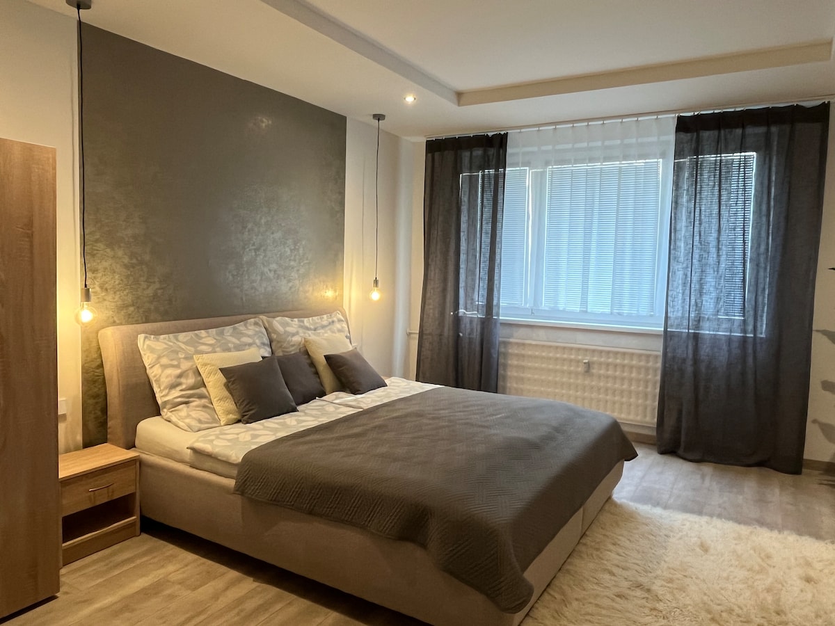 Schaffe neue Erinnerungen an diesen einzigartigen und familienfreundlichen Ort. Komm und verbringe deinen Urlaub in einem völlig neuen Apartmentkomplex. Du wirst den Blick auf Bojnice mit uns genießen, die nur wenige Gehminuten von einem kurzen Spaziergang durch den Stadtpark entfernt sind. Du kannst romantische Momente auf der hellen Terrasse der Wohnung verbringen oder die Umgebung erkunden. Du findest eine voll ausgestattete Küche mit Kaffeemaschine, Wasserkocher und anderen elektronischen Geräten, WLAN, TV, Waschmaschine und Trockner vor.