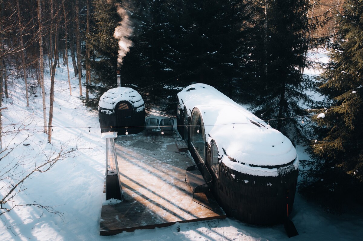 In dieser ruhigen Oase kannst du dir eine Auszeit nehmen und dich entspannen. Mini-Haus aus Glas mit Blick auf den Kiefernwald. Das Haus hat eine Dusche, eine Toilette, eine Küchenzeile. Schöne Sauna mit Blick auf den Kiefernwald und einen Grill. Es besteht die Möglichkeit, einen Whirlpool zu mieten! Schlafsofa zum Schlafen. Meer ca. 4,5 km. Die schönen Kiefernwälder gibt es überall. Das Haupthaus ist ca. 40 m entfernt. Der Lahemaa-Nationalpark befindet sich in der Nähe. Herrlicher Ort zum Entspannen.