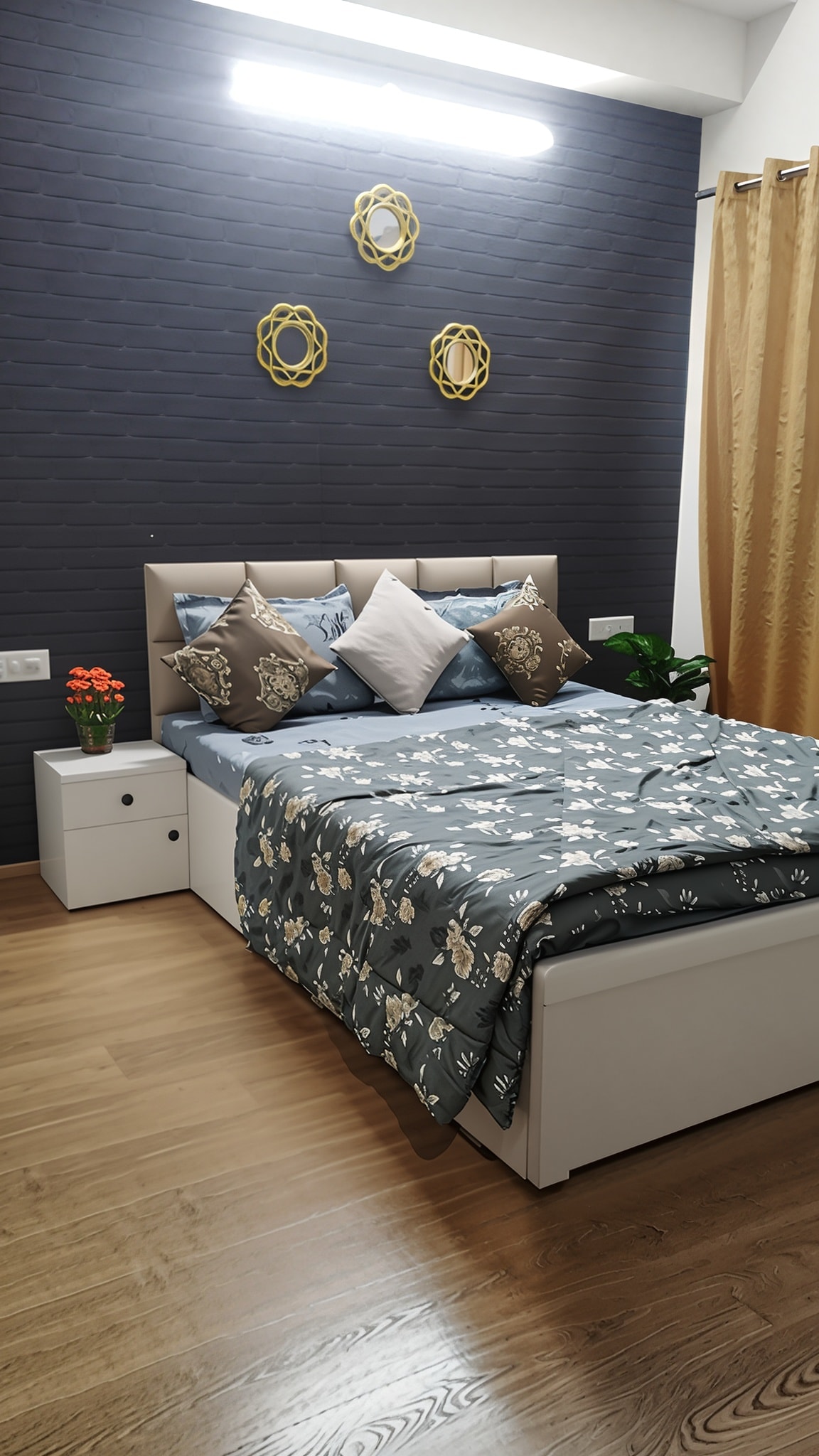 Its a direct Runway/ Airport view apartment, located 600 mtrs walking distance from airport. Discover timeless luxury at our homestay, where bold black interiors meet shimmering gold accents. Handcrafted Shisham wood furniture brings warmth, richness,heritage charm, blending seamlessly with modern sophistication. Plush seating, golden lighting, and meticulous details create an ambiance of royal elegance, offering guests an unforgettable stay in a space designed for ultimate comfort and style.