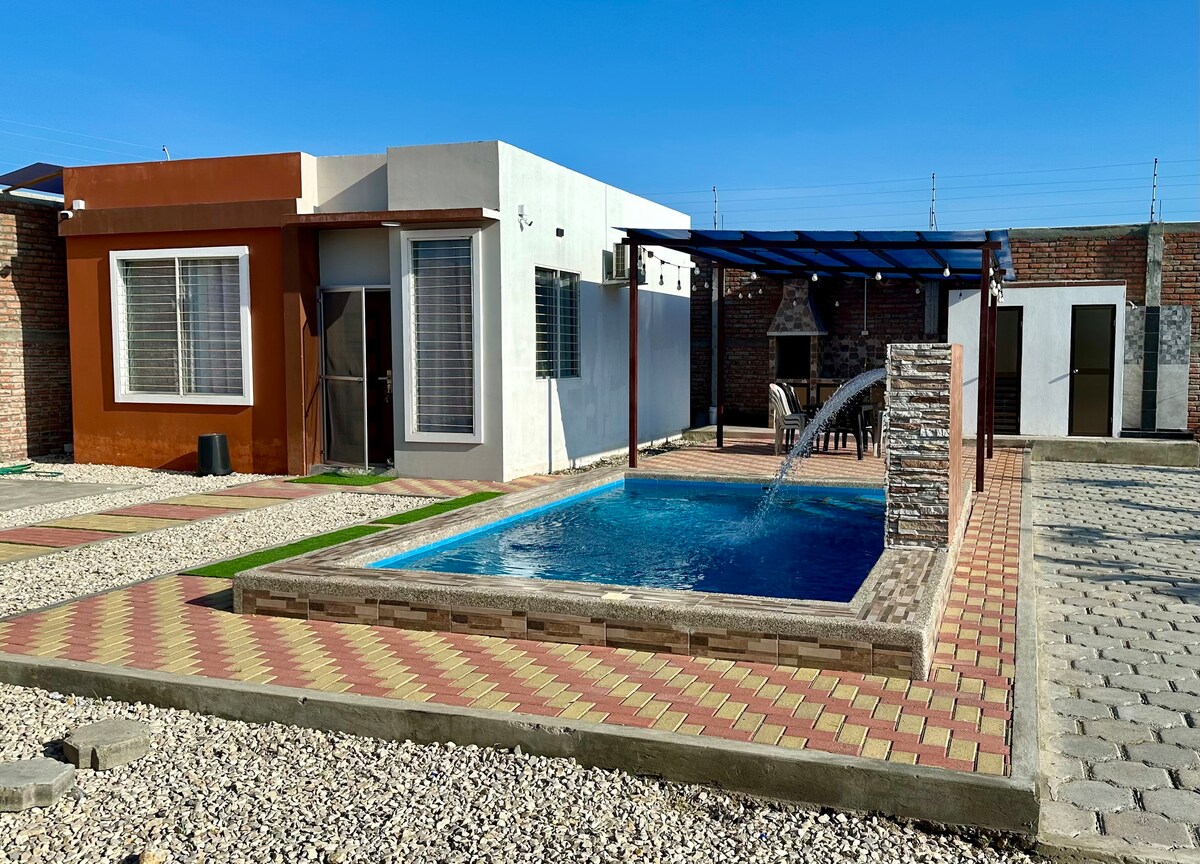 Willkommen in unserem Strandhaus in Ballenita. Dieser geräumige und ruhige Rückzugsort ist der perfekte Rückzugsort für diejenigen, die einen erholsamen Kurzurlaub am Meer suchen. Nur 25 Minuten von Salinas und 45 Minuten vom Nachtleben von Montanita entfernt. •Privater Infinity-Pool zur alleinigen Nutzung während deines Aufenthalts. Die Eigentümer-Suite ist oben, aber während deines Aufenthalts nicht belegt. •Der Strand ist nur 5 Gehminuten entfernt. •Außendusche •Smart-TV und W-Lan • lokale Restaurants nur wenige Minuten entfernt. •Private Villa mit bewachter Wand.