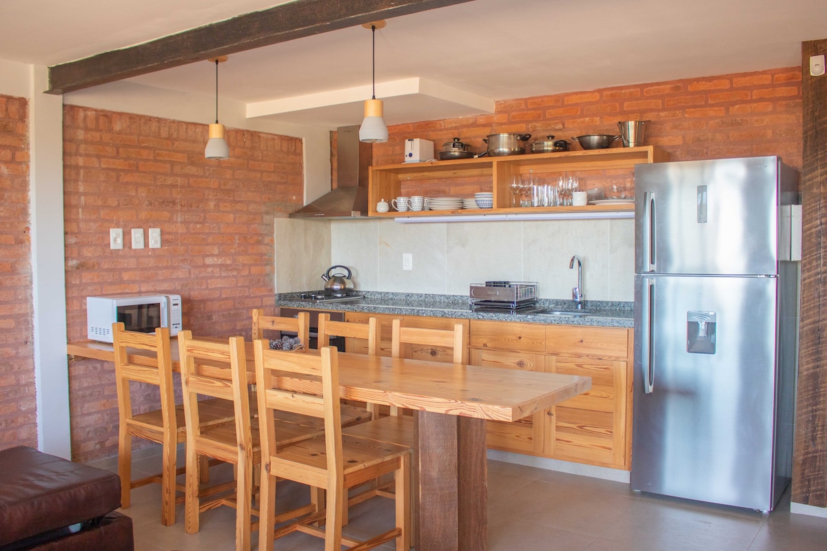 Monoambiente amplio completamente equipado ideal para dos personas. Cuenta con un baño en la suite y cama matrimonial. Cocina integrada completamente equipada, aire acondicionado y espacio exterior con muebles y parrillero individual.