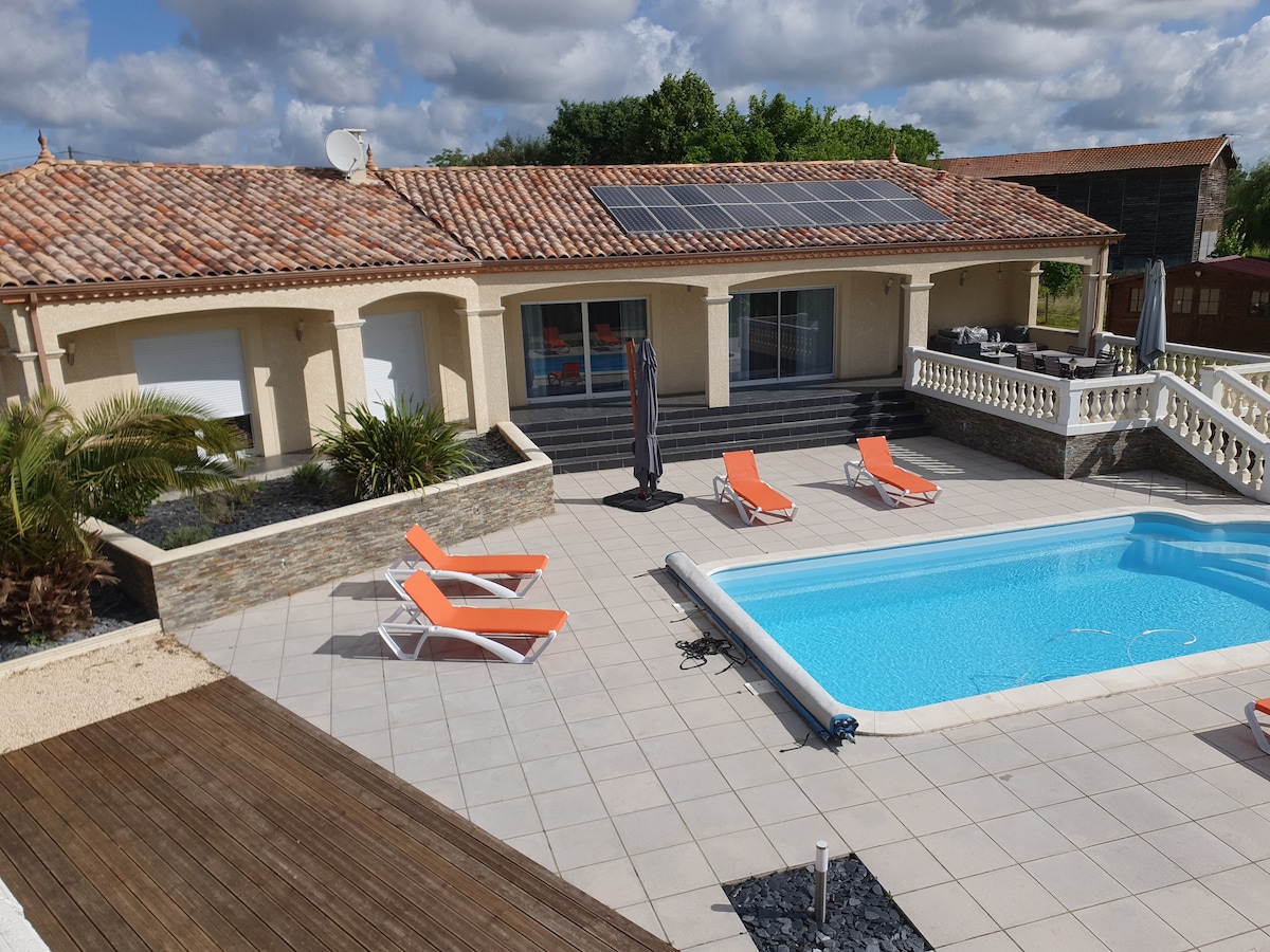 Luxusvilla für 12-15 Personen, komplett ausgestattet, Fußbodenheizung, 6 Schlafzimmer, großes Bad mit Badewanne, ebenerdiger Dusche, Bad, 2wc. Küche mit offener Qualität, Esszimmer mit TV 200 cm, Internetzugang über Glasfaser. Bouleplatz 15x5, Schaukel, Trampolin, Tischtennis stehen zur Verfügung. Park von 5800m2. Glasfenster mit Blick auf den sicheren Pool. Ruhiger und erholsamer Ort. Ideal mit Freunden oder Familie.