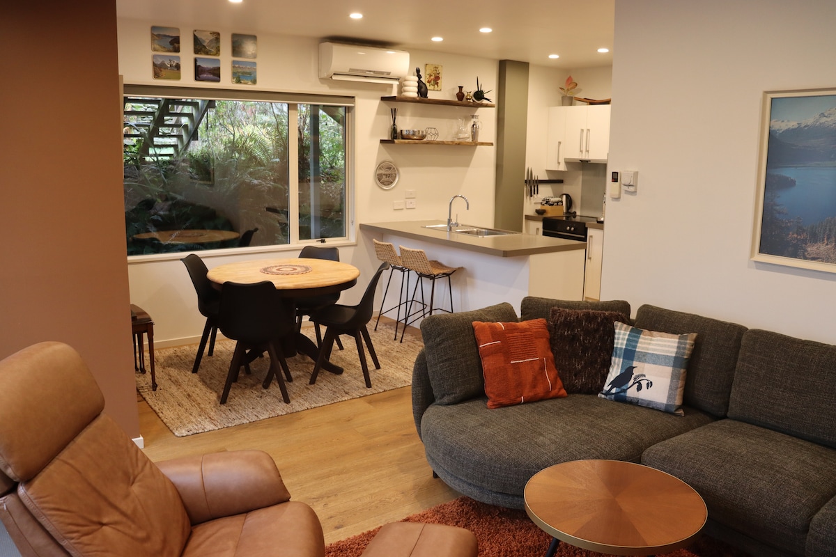 Dieses eigenständige Studio mit Küche, Garten und Spa ist ein luxuriöser, ruhiger Rückzugsort im Herzen des Wakatipu-Becken. Dieses separate Gebäude hat einen eigenen privaten Eingang, zentral zu vielen lokalen Sehenswürdigkeiten, nur wenige Minuten von Einkaufsmöglichkeiten und dem Flughafen und etwa 10 Fahrminuten vom Stadtzentrum entfernt. Spaziergänge, Einkaufsmöglichkeiten, Bungy-Jumping, Jetbootfahren, Skilometer und mehr sind alle in der Nähe. Ein großartiger Ort, um sich zurechtzufinden, egal ob du hier bist, um dich zu besichtigen, zu entspannen oder geschäftlich unterwegs zu sein.