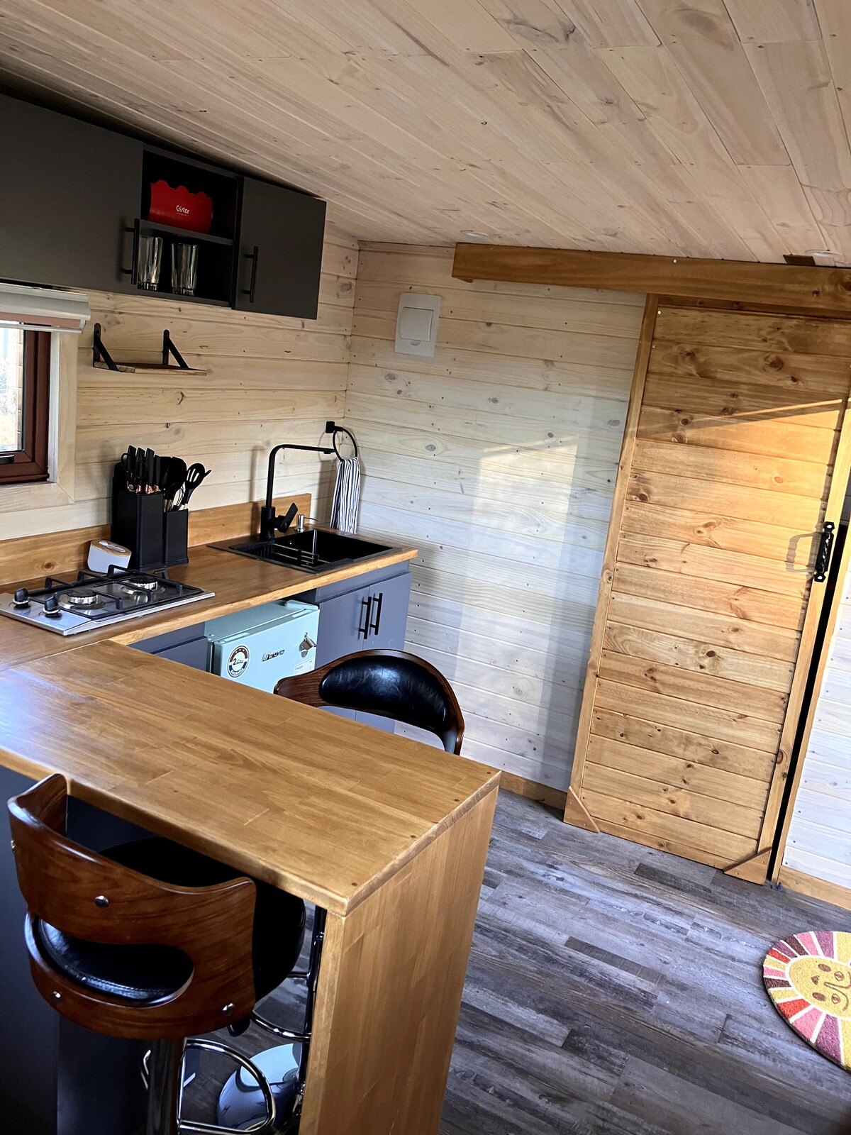 Neue Hütte mit modernem Touch, oben im Sektor gelegen und mit der besten Aussicht. Es verfügt über eine ausgestattete Küche, ein komfortables Doppelbett, ein kleines Wohnzimmer mit zwei Sesseln, einen Smart-TV mit einem offenen Signal und WLAN-Verbindung, eine exquisite und komfortable Dusche mit einem Glasvorhang, Klimaanlage und einen Balkon mit einer schönen Aussicht. Genieße ein exquisites, rustikales, privates Steinhaus in einem gemütlichen, sehr diskreten Raum zu einem sehr günstigen Preis.