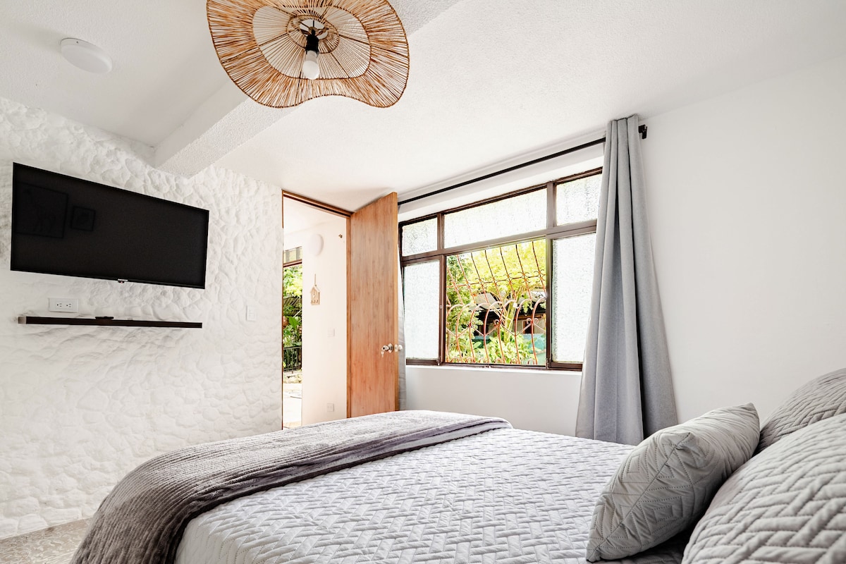Entdecke Quimbaya in einer ländlichen Wohnung inmitten der Natur, ideal für Familien und Gruppen. Nur wenige Minuten vom Parque del Café und Panaca entfernt, genieße eine privilegierte Lage im Herzen der Kaffeeregion. Entspanne dich im Gemeinschaftspool mit verlängerten Öffnungszeiten, ideal zum Entspannen nach einem Tag voller Abenteuer. Deine Gruppe wird eine private Unterkunft im zweiten Stock mit einem unabhängigen Eingang, 3 Schlafzimmern, 2 Badezimmern und einer voll ausgestatteten Küche haben. Die Unterkunft verfügt außerdem über ein Restaurant, ein Café und eine Bar.