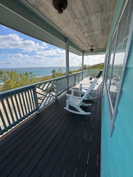 Das kürzlich erbaute Haus am Wasser in Rainbow Bay Eleuthera bietet von jedem Zimmer aus einen atemberaubenden Blick auf den Atlantik. Voll ausgestattete Gourmet-Küche mit Kitchenaid- und Bosch-Geräten. Leise geteilte Klimaanlagen in jedem Zimmer. Große (800 sqft, 80 sqm) überdachte Veranda zum Entspannen bei einer Mahlzeit oder einer Tasse Kaffee und Blick auf das Meer. 2 Schlafzimmer 2 Badezimmer (1 en-suite), offenes, luftiges und elegantes Design.