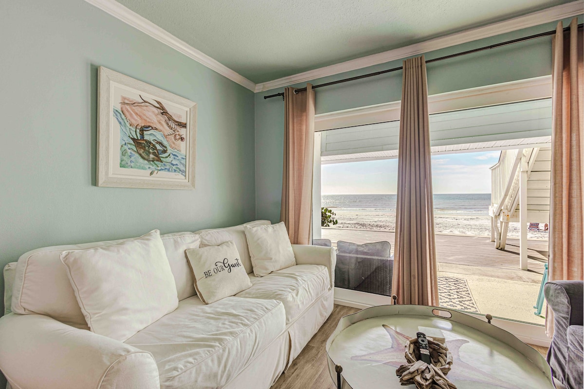 Renovated waterfront condo, steps from the beach.