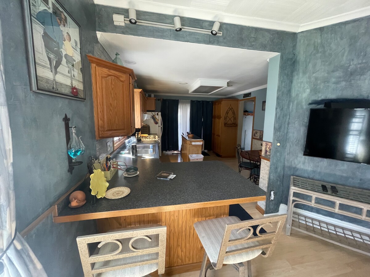Alles neu im Jahr 2018, frisch & neu. Bequeme Möbel. Alle neuen Bodenbeläge. SICHERES WLAN, neue voll ausgestattete Küche mit Edelstahl-Mikrowelle, Kühlschrank und Herd, geräumige Wohnbereiche. Schlafzimmer mit Kingsize-Bett und Wandschränken, 2 Smart-TVs mit Antennen. Serta-Couch/Doppelbett. 2,9 Meilen von der McLaren Bay Region, 1,7 Meilen von Consumers Karn, 1 Meile von der Bootsrampe und dem Park am Wasser von Smith Park, 3,4 Meilen vom The City Market und der Innenstadt von Bay City entfernt. Privatparkplatz, Veranda und 3-Jahreszeiten-Zimmer.