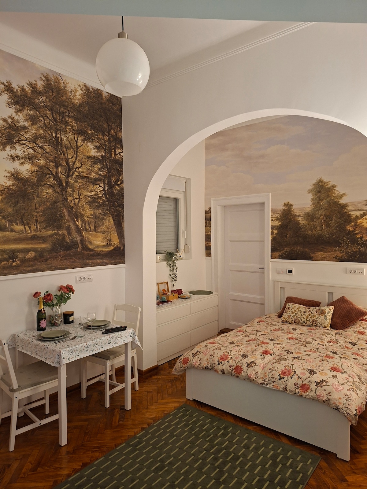 Harmonisches, modernes und schön gestaltetes Studio für zwei Personen, umgeben von allen städtischen Aktivitäten, aber dennoch in ruhiger Lage. Der Raum ist eine einzigartige Einheit und besteht aus einem Wohnzimmer, einer durch einen Stehtisch getrennten Küche, einem Arbeitsbereich, einem Flur mit einem bequemen Kleiderschrank und einem Badezimmer. Der französische Balkon bietet eine schöne und weite Aussicht sowie eine gute Beleuchtung. Das Studio wurde komplett renoviert und die Möbel sind neu und modern. Diese Unterkunft bietet Ihnen den Komfort, den Sie verdienen.