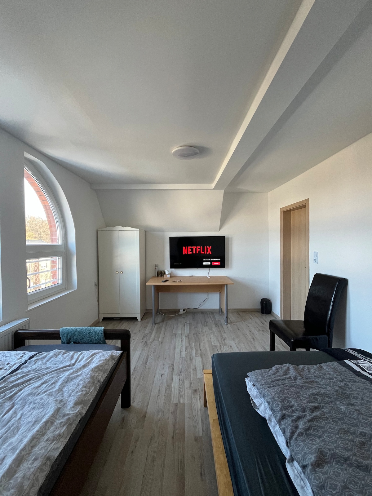 24h self Check in/out, bed, bike and more, kleine 10qm Unterkunft, 1. OG, 1 Schräge, separater Zugang, 1 oder 2 Betten , eigenes mini Bad (Dusche, Waschbecken + WC) abgetrennt im Raum, kleine Küche mit Kühlschrank, kleiner Backofen + Mikrowelle, Schreibtisch mit Stuhl, Lesestuhl, Tisch mit 2 Stühlen, Regale, Kleiderstange , TV+Amazon Alexa, Bettwäsche + Handtücher, Fahrräder frei , 350m-Aasee, -Bäcker , 550m-Supermarkt. 3km City, 400m-Autobahn, 15m + 300m Busstop, City + Uni: 12 min