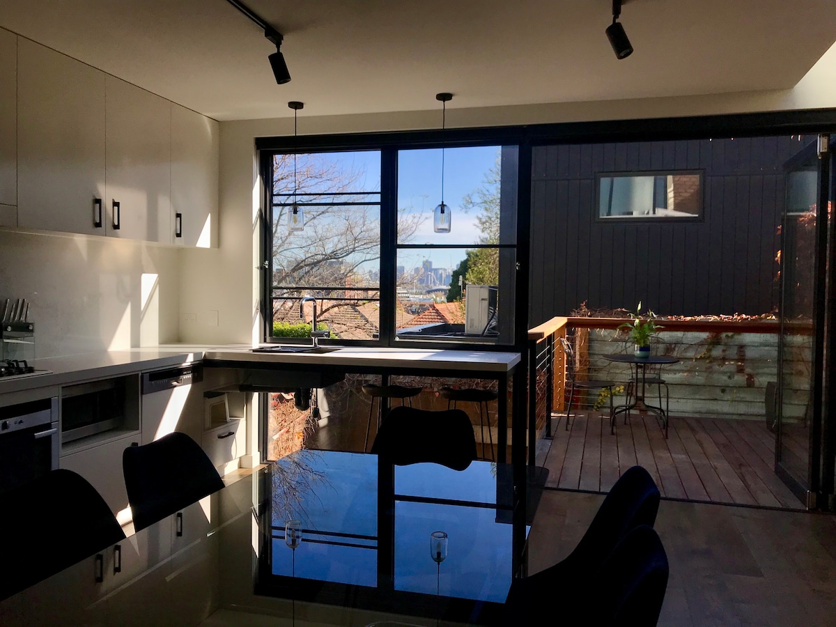 Stilvolles, geräumiges 2-stöckiges Haus mit 4 Schlafzimmern, 2,5 Badezimmern, Arbeitszimmer, großen offenen Küchen-/Ess-/Wohnbereichen, die sich zu einer privaten Terrasse mit Außenbereich und Grill sowie einem sonnigen, von Bäumen gesäumten Innenhof hin öffnen. Schlafplätze für bis zu 9 Personen. (Queensize-Bett, Queensize-Bett, 2 Einzelbetten, Einzel- und Doppelschlafsofa, Couch X2). Gut ausgestattete Küche und Speisekammer. Büroarbeitsplatz. 2 Autos. Klimaanlage, Highspeed-Internetzugang, 55-Zoll-Smart-TV. In der Nähe von Supermärkten, Cafés, Bars, Straßenbahnen und Zügen. Einfacher Zugang zum Melbourne CBD. Lage und Lifestyle. Viel Spaß.