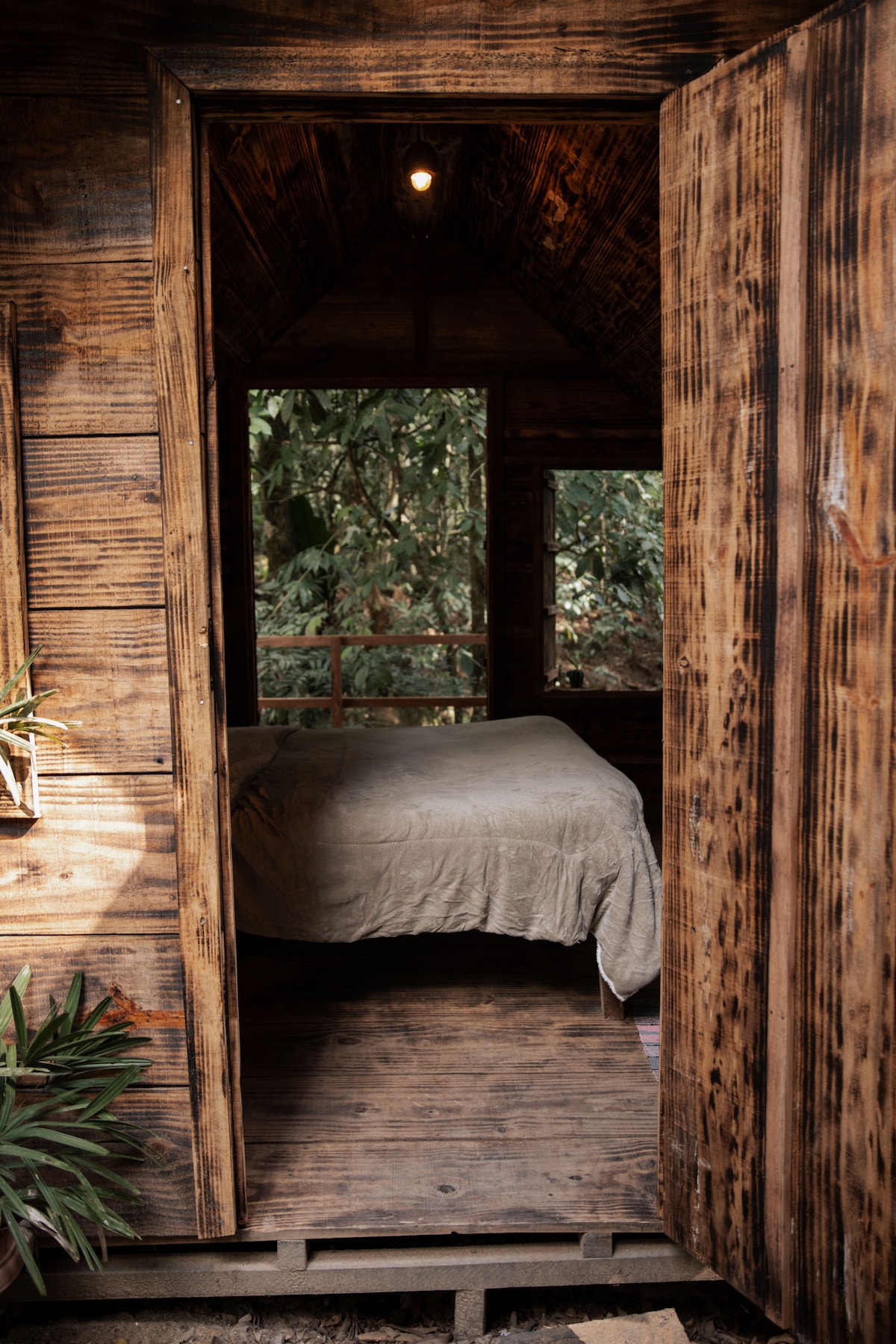 Mit Bettwäsche, Badetüchern, Ventilator. Hinweis: Es gibt kein Badezimmer im Chalet. Gemeinschaftsbäder weiter vom Chalet entfernt. NO CAMPING HAS: 🚿Badezimmer mit elektrischen Duschen. 🗨️Wohnbereich mit einer Hängematte zum Ausruhen. 📱WLAN Einfache 🍽️ Gemeinschaftsküche mit Herd, Kühlschrank und Utensilien. 🏞 Zugang zum Fluss Sana. Kostenloser 🚗Parkplatz Im Herzen des Artcafé-Campingplatzes📌 gelegen. In der Nähe von lokalen Geschäften: Bäckerei, Märkte, Bars und Restaurants, Wasserfälle usw.