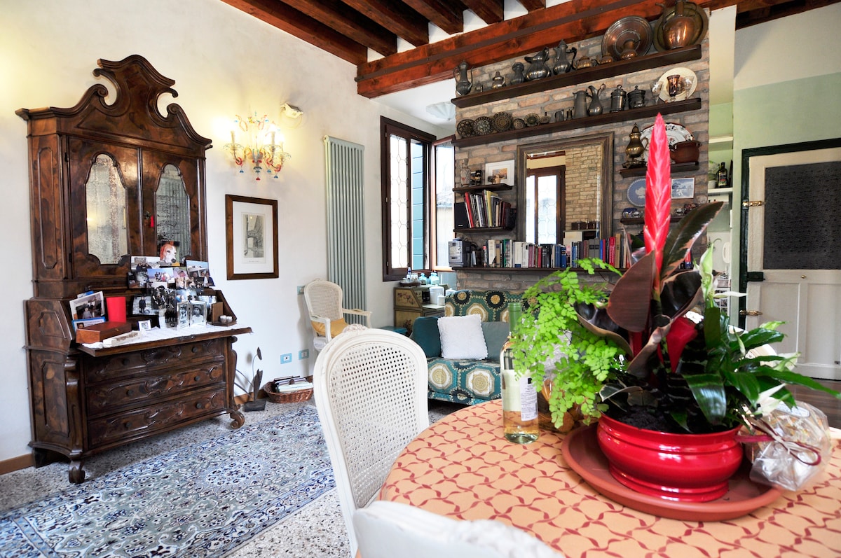 Unsere Wohnung ist für diejenigen, die Designkunst und zeitgenössische Kunst lieben, hat einen Balkon, auf dem du bleiben und die „Gondel“ sehen kannst, und du bist wirklich in der Nähe der Vaporetto-Haltestelle, wo du die orangefarbene Linie nehmen kannst, die dich in 30 Minuten zum Flughafen bringt BITTE SIEH DIR AUCH MEINE ANDERE NEUE WOHNUNG IN DER NÄHE AN https://www.airbnb.it/rooms/22159772