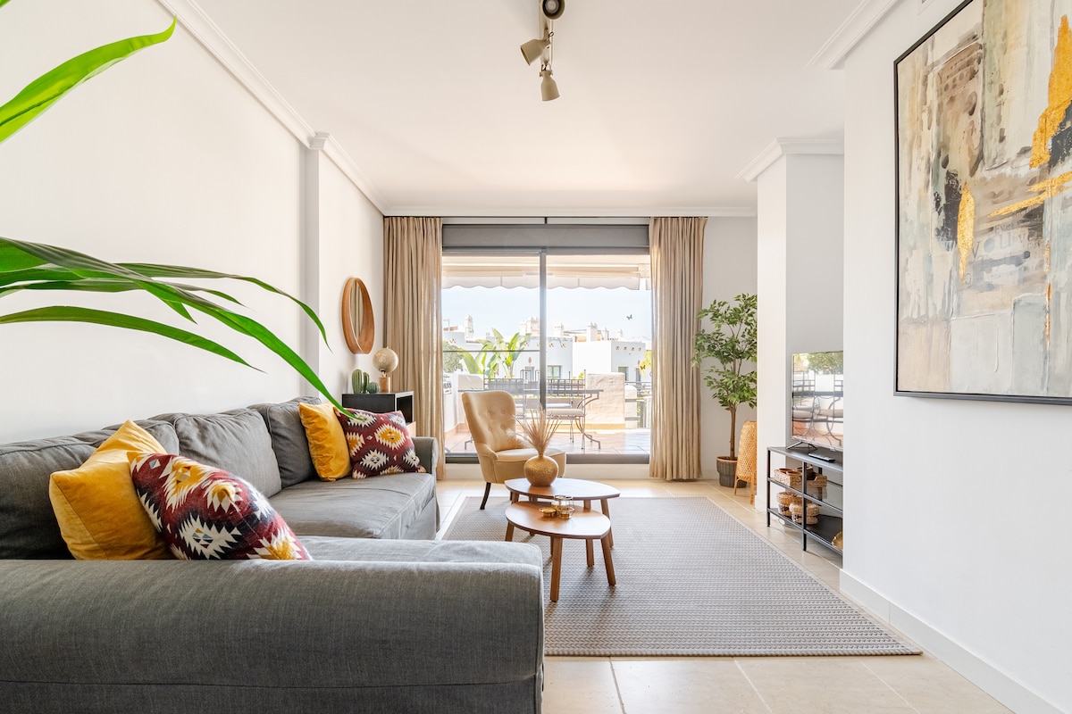 Wake up to blue skies and breathtaking sea views from your private rooftop 🌊. Enjoy golden sunsets, a glass of wine, or sunbathe in privacy. This bright apartment in Pueblo Paraiso is just 12 min from Marbella’s beaches, golf and Old Town. Fast Wi-Fi, comfy beds, equipped kitchen, infinity pool, and rooftop for stargazing or sunset dinners. Perfect for couples, families or remote work. Kid-friendly with playground access nearby