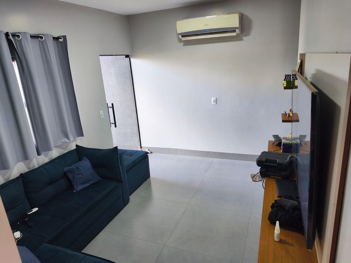 Genießen Sie die Einfachheit in diesem ruhigen, gut gelegenen Ort . Mit zwei großen Suiten im Obergeschoss und einem Schlafzimmer mit exklusivem Badezimmer und einem Außenbereich mit viel Grün zum Entspannen. Küche mit Minibar/Mikrowelle/Herd mit zwei Mündungen/Trinkbrunnen und Haushaltsutensilien ausgestattet. Im Erdgeschoss befinden sich die Küche und ein Mehrzweckraum. Parken im Außenbereich des Grundstücks. Mit einer privilegierten Lage, in der Nähe von: Einkaufszentrum Buriti, Restaurants , Bäckerei, Tankstelle und Platz.