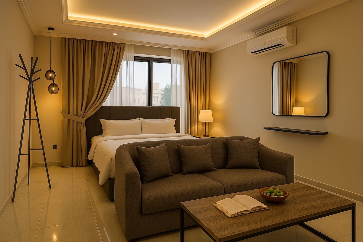 A1 Ruhige Hotelwohnung mit Sitzplatz im Freien in der Nähe der Riyadh-Saison