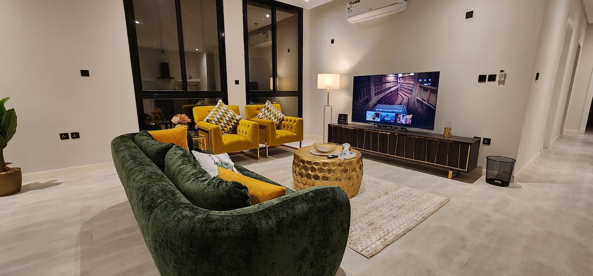 Eine strategische Lage mit vielen Restaurants und Cafés und alle Ihre Bedürfnisse sind weniger als 5 Minuten von Ihnen entfernt. - Boulevard Riyadh City ist 5 km entfernt - Boulevard World ist 5 km entfernt - Winterunderland Spielstadt 2 km - Riyadh Park Mall 7 km - U Walk Komplex - 8 km King Saud Universität - 7 km King Abdullah Financial City 6 km - King Khalid International Airport 18 km