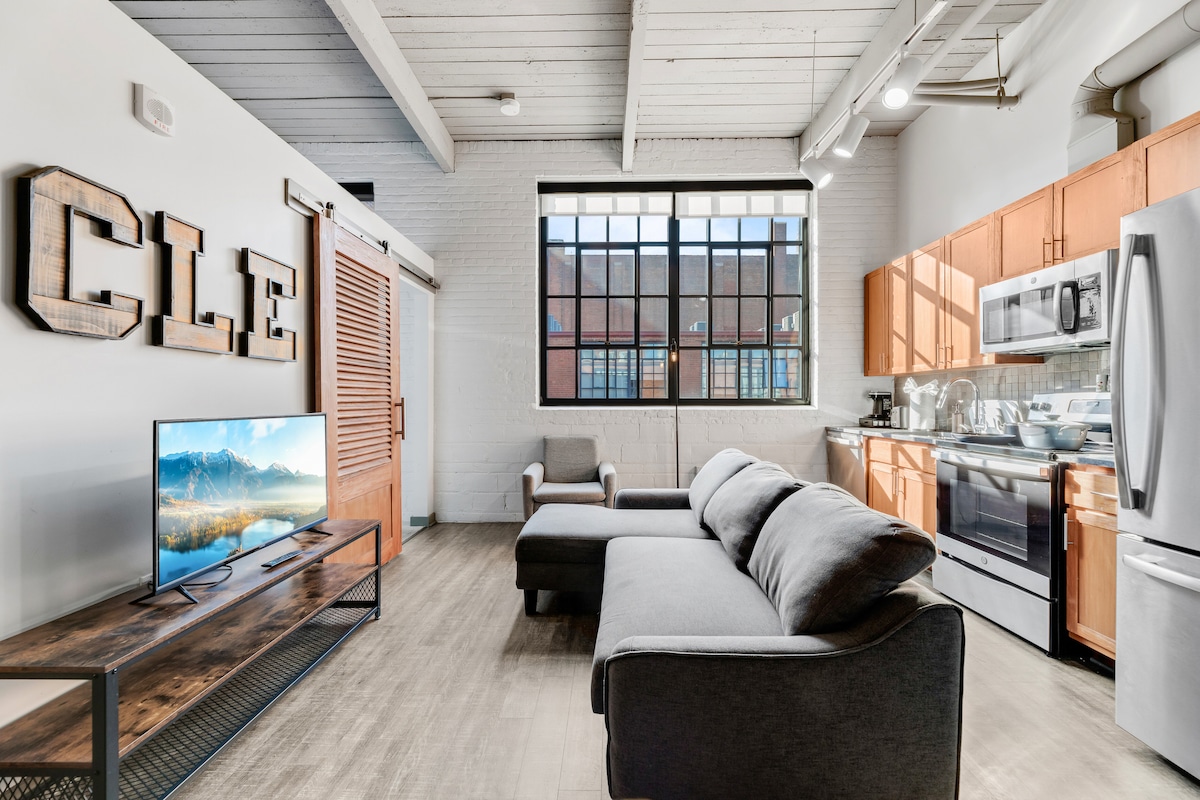 Downtown Cleveland Loft • Kamin • Fitnessraum • Sauna