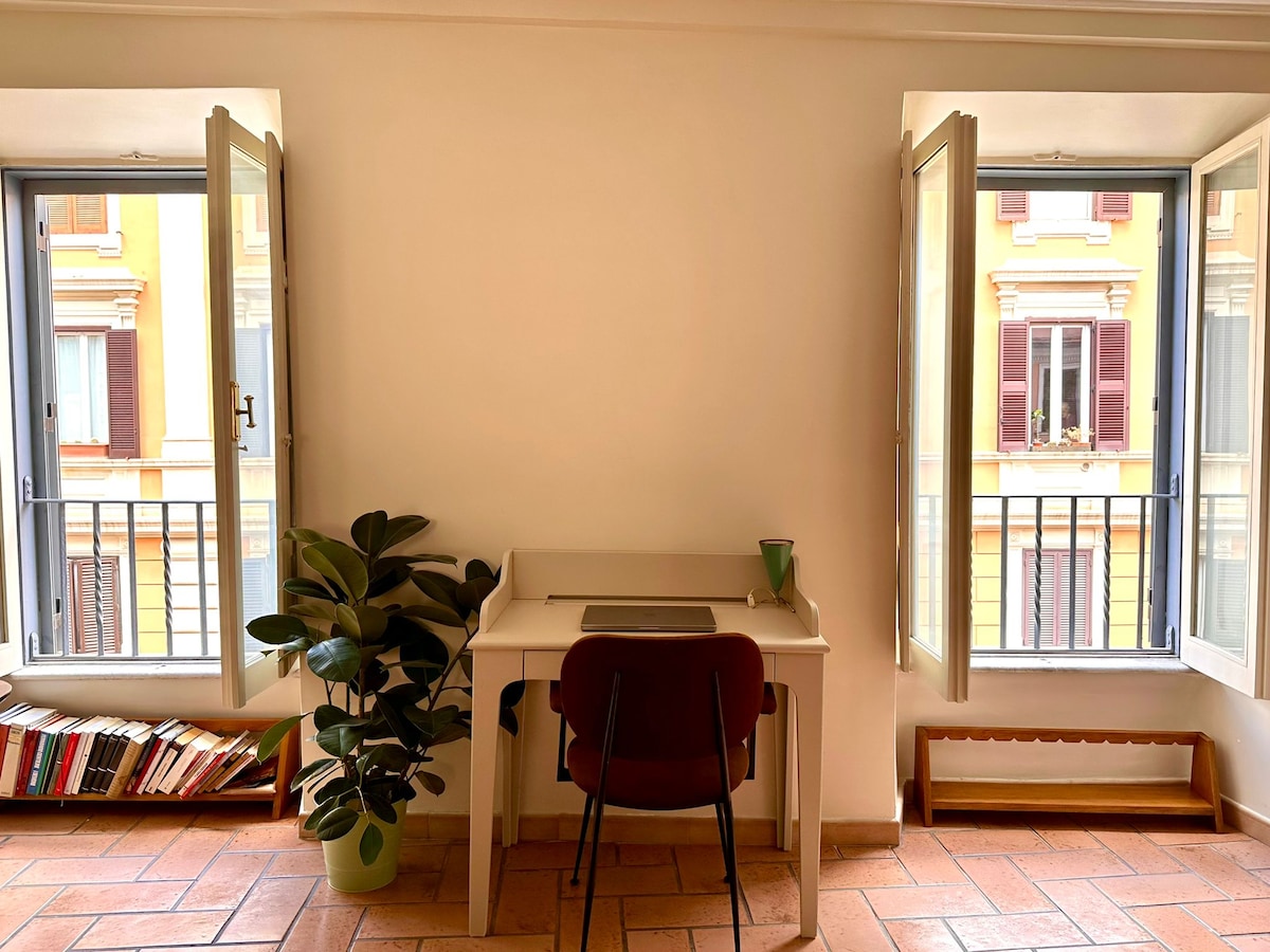 Delizioso appartamento, nuovo, piano strada, indipendente, ampio, in un palazzo del 1600 in una via caratteristica e tranquilla nel cuore del Rione Monti a 10 minuti a piedi dal Colosseo. Completamente termo condizionato è composto da zona living con divano letto matrimoniale (m, 1,60), grande cucina a vista con piano a induzione, forno, lavastoviglie, microonde e frigo, una camera da letto matrimoniale con grande armadio e grande bagno con doccia a soffione. Wifi. Cassaforte, smart TV.