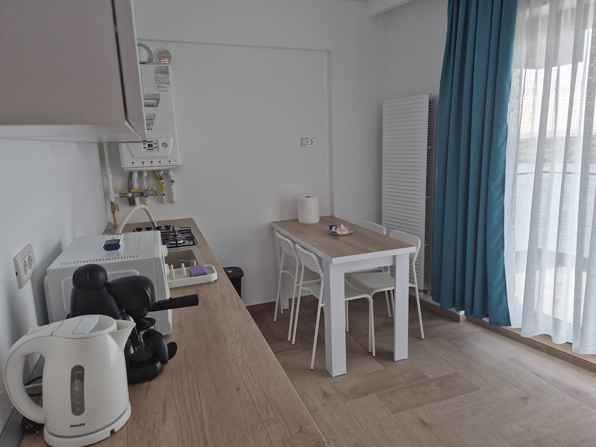 Gemütliches Studio im Zentrum von Navodari, im Erdgeschoss, ideal für 1-2 Personen. Ausgestattet mit Klimaanlage, zentral, Schlafsofa, Smart-TV mit Netflix und YouTube, WLAN-Internet, ausgestatteter Küche (einschließlich Espressomaschine mit Kapseln), Badezimmer mit Dusche, Waschmaschine, Bügeleisen und Bügelbrett, Trockner, kompletter Bettwäsche, Hygieneprodukten, Einweg-Hausschuhen.