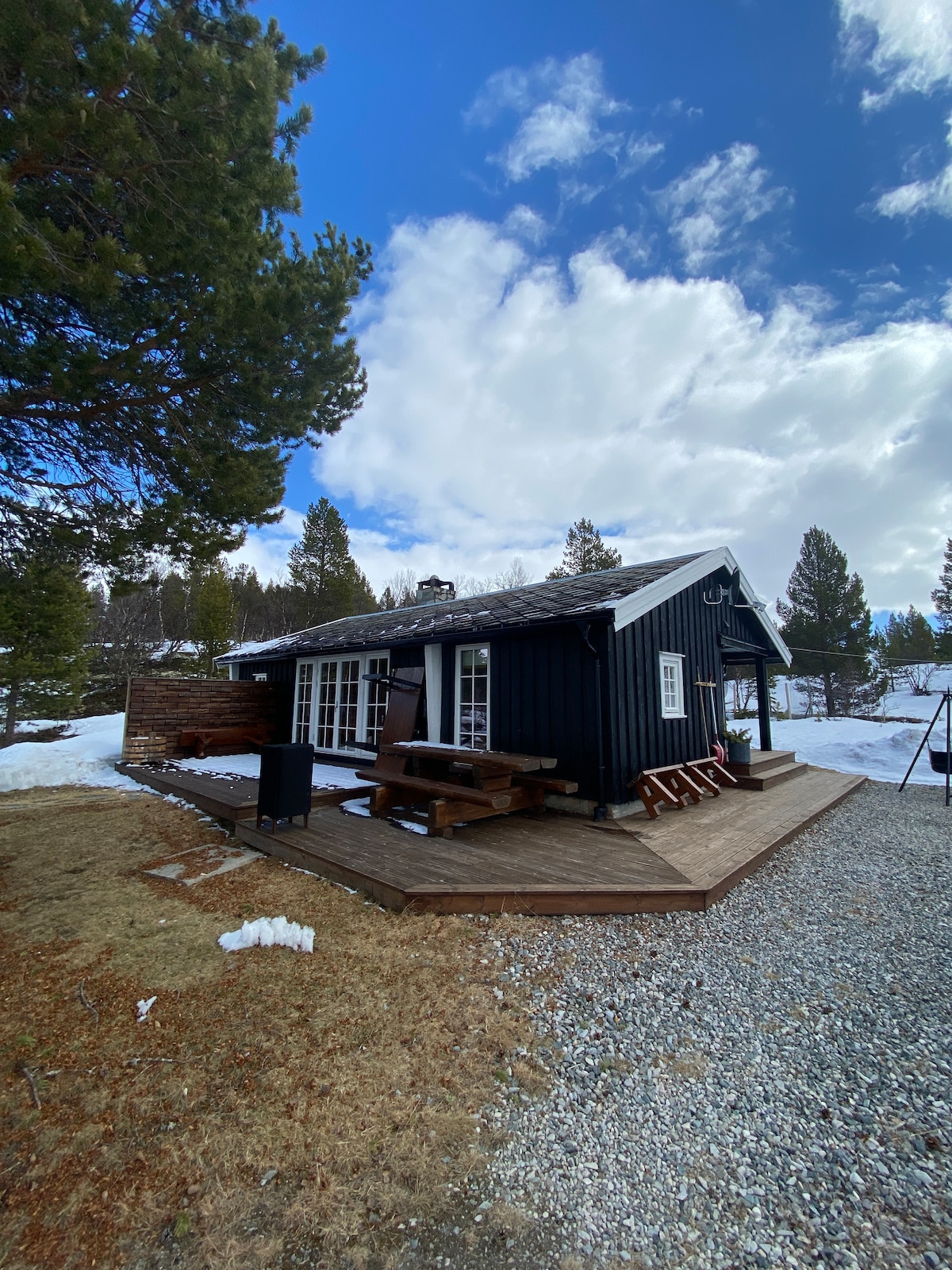 Gemütliche Hütte mit Wandergelände direkt vor der Tür. Parkmöglichkeit direkt bei der Hütte. Gut ausgestattete und leichte Zelte. Perfekt für die Familie. 1 Schlafzimmer mit Familienbett, Schlafsofa für Doppelschlafsofa und großes Bett im Wohnzimmer. Badezimmer mit Duschkabine, Waschmaschine und Wäschetrockner. Gemütliche Küche mit Esstisch, Geschirrspüler und Backofen. Wohnzimmer mit TV, Kamin und Couch. Verlassen Sie den Ort mit einem Whirlpool und einem Lagerfeuer. Der Whirlpool muss nachgefüllt und selbst entleert und nach Gebrauch gereinigt werden. Die Hütte wird an Wochenenden, Wochentagen, an Veranstaltungen in der Nähe, an Feiertagen usw. gemietet.