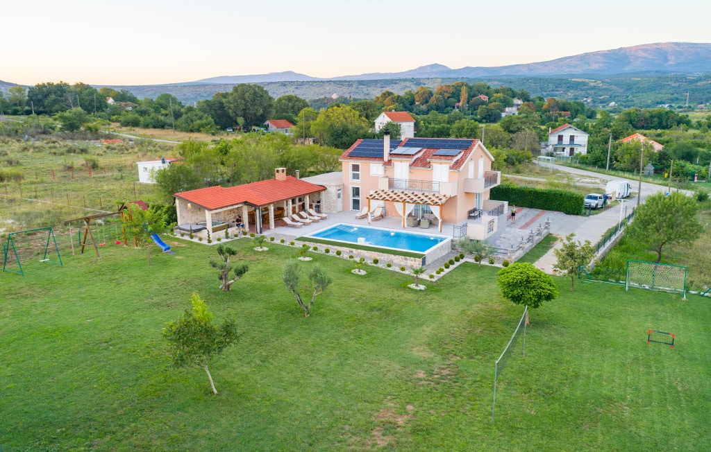 Prekrasna vila za odmor sa privatnim grijanim bazenom sa hidromasažom u blizini nacionalnog parka Krka. U mirnom okruženju sa pogledom na mauzolej Ivana Meštrovića. Sastoji se od tri spavaće sobe sa duplim krevetima za 6 osoba, kuhinjom sa dnevnim boravkom, kupaonicom i WC-om. Kuća je kompletno opremljena sa svim potrebnim za život. Ispred kuće je sunčalište sa bazenom i kaminom te stolom i stolicama za objedovanje u večernjem ugođaju uz potpunu privatnost. Iza kuće je parking za 4 vozila