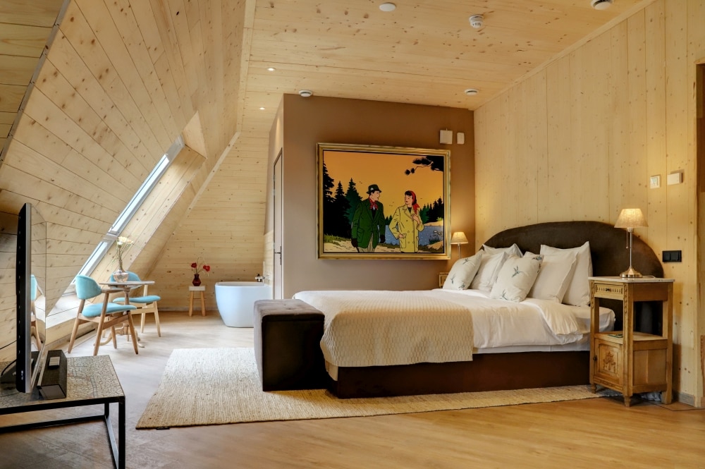 Suite — Luxe met uitzicht op bos en ven Verblijf in een ruime en comfortabele suite met een kingsize bed, knus zitgedeelte, tv en bad met prachtig uitzicht op het bos en het ven. Hotel Bent is Green Globe gecertificeerd en in ons plantaardige restaurant kun je terecht voor een duurzame lunch of diner. Stijlvol, rustig en omringd door natuur.