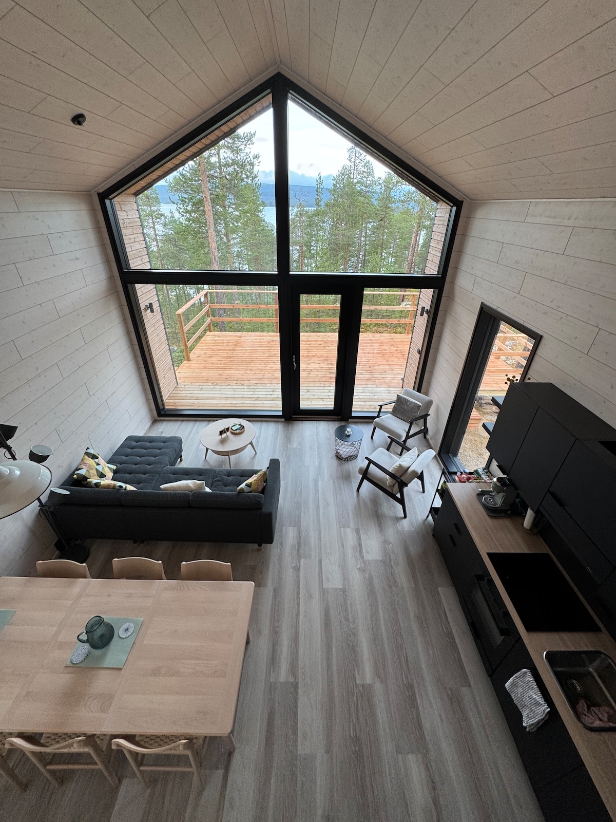 Hochwertige Ferienvilla, Baujahr 2022, an einem ruhigen Aussichtspunkt in Inari. Tolle Aussicht über den See Rahajärvi von großen Fenstern. Umgeben von authentischer, lappländischer Natur. Falls du die Natur aus irgendeinem Grund nicht erkunden möchtest, gibt es zwei Smart-TVs (65 Zoll und 55 Zoll), PS5 und Nintendo Switch zum Spielen. Der Fernseher im Schlafzimmer ist nur zum Streamen geeignet. Entfernungen: nächster Nachbar 0,4 km, Bushaltestelle 5 km, Supermarkt 15 km, Restaurant 15 km, Flughafen 25 km. Hinweis! Der Kamin der Villa steht nicht zur Verfügung.