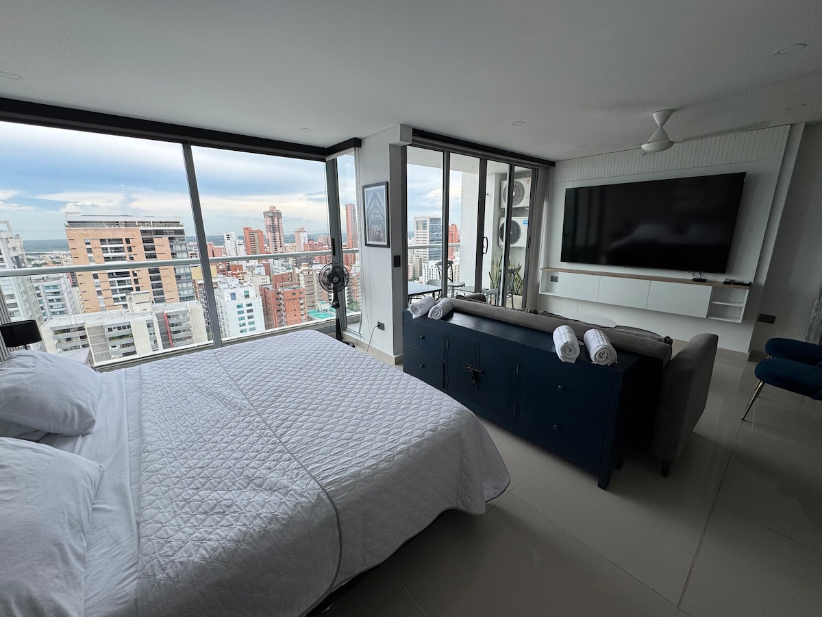Charmante Wohnung-Suite, neu, modern und automatisiert, in einer der besten Gegenden der Stadt, Nuevo Horizonte Nachbarschaft, in der Nähe des Sagrado Corazon Parks. Die Einzimmerwohnung verfügt über den Komfort für einen angenehmen Aufenthalt, ob lang oder kurz, für Tourismus oder Arbeit, schnelles 900-Mbps-WLAN. Ganz in der Nähe der besten Restaurants, Einkaufszentren, Parks, Bars und Rumba-Stätten der Stadt. Ideal für Führungskräfte, die Komfort suchen.