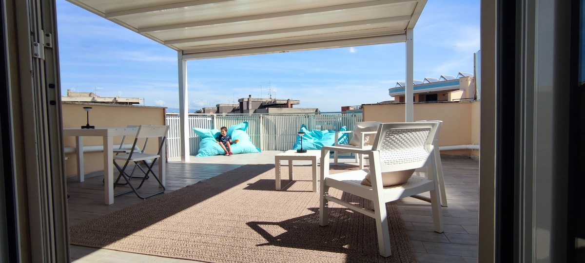 Entspannen Sie sich und genießen Sie ein Frühstück oder einen Aperitif auf der wunderschönen Terrasse mit Meerblick! Schlafen Sie ein zum Rauschen der Meereswellen! Geräumiger Privatparkplatz. Rom ist 25 Minuten entfernt. Das Meer ist in wenigen Minuten erreichbar. Genießen Sie die besten Fischrestaurants Roms! Supermärkte, Bars und Apotheken sind nur wenige Meter entfernt. Es besteht die Möglichkeit, ein Taxi zum Apartment und zum Flughafen zu organisieren.