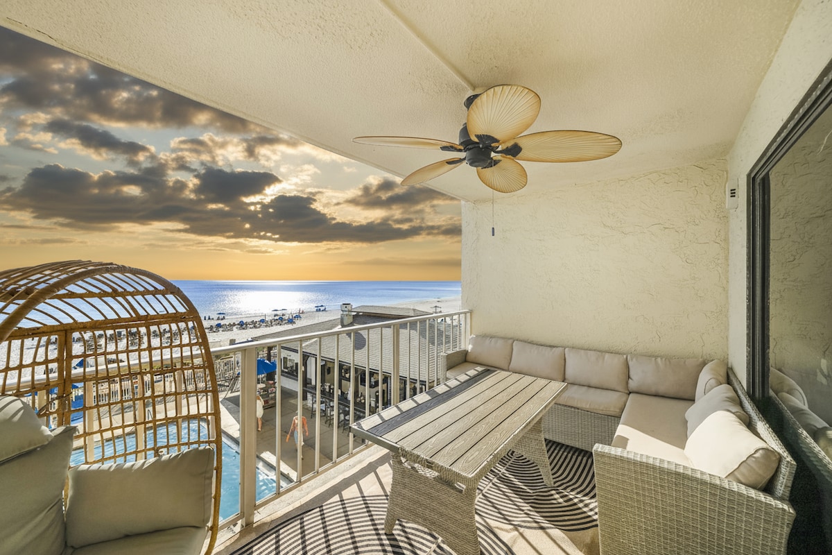 Mit ihrem unendlichen Blick auf den Golf, einem offenen Grundriss und eleganten Akzenten wird diese luxuriöse Eigentumswohnung am Strand auch den anspruchsvollsten Gästen gefallen. Das große Zimmer verfügt über eine fantastische, voll ausgestattete Küche mit Edelstahlgeräten und einem Sitzbereich für drei Personen. Genieße formellere Mahlzeiten zusammen am Innentisch für sechs Personen oder im Freien auf deinem möblierten Balkon. Der gemütliche, sonnendurchflutete Wohnbereich verfügt über einen Gaskamin und einen wandmontierten Flachbildfernseher, während die Glasschiebetüren den gesamten Raum zum Balkon hin öffnen. Und für die Schlafgelegenheiten bietet diese Eigentumswohnung drei komfortable Schlafzimmer, darunter ein „Meerjungfrauen-freundliches“ Kinderzimmer. Die Gäste haben auch Zugang zu einer Vielzahl von Annehmlichkeiten vor Ort, darunter ein Fitnessraum, ein saisonal beheizter Pool und ein Whirlpool.