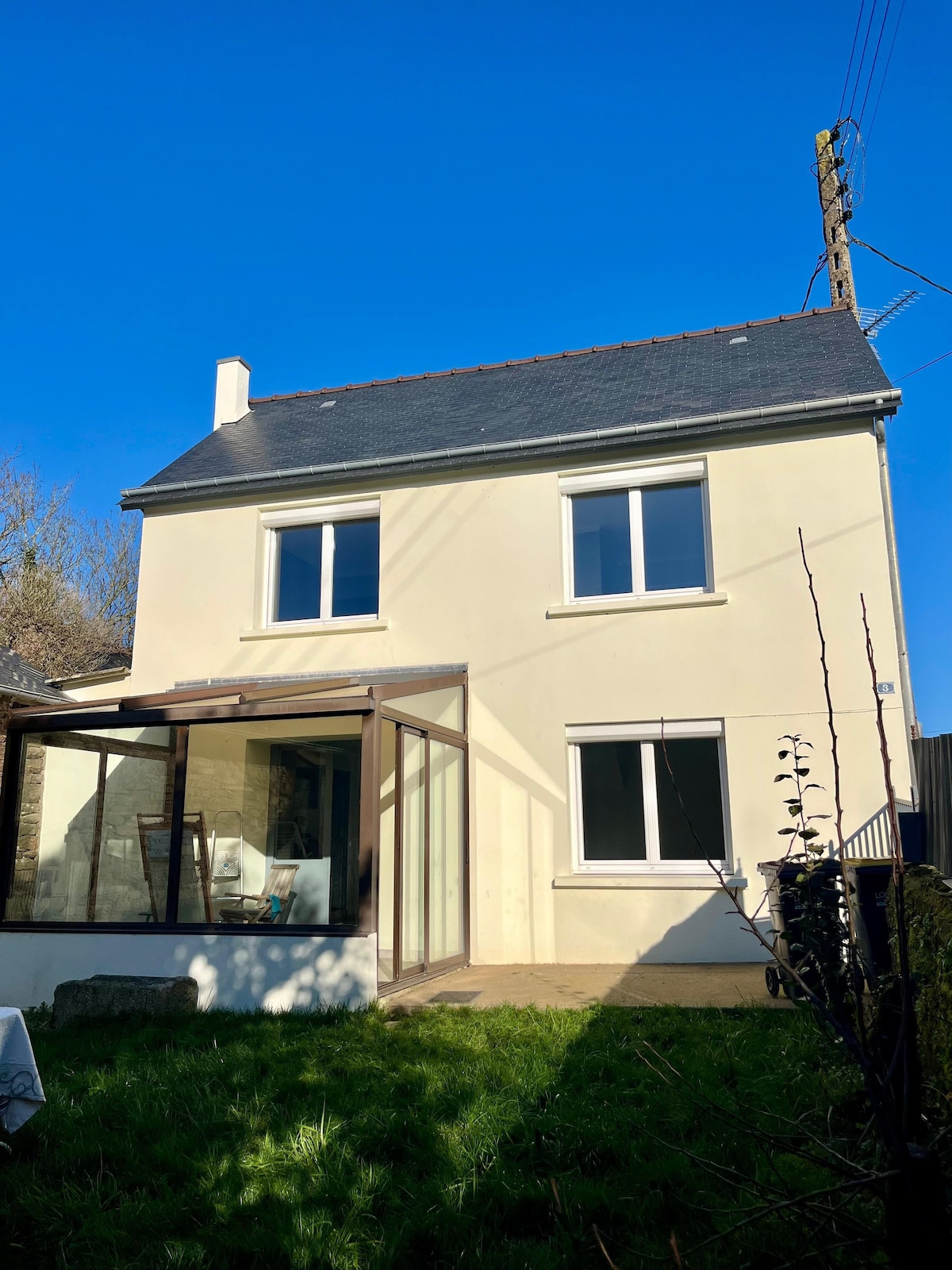 Ker Mimi empfängt Sie in Guerledan in der Nähe des Sees und seiner Wassersportbasis: Strand, Kanufahren, Funtube, Tretboote, Wasserski, Baumklettern, Reitzentrum, Klettern H. S. Idealer Ort für Wanderer und Radfahrer. Erdgeschoss: Wohnzimmer mit Kamin, TV und Internet. Komplett ausgestattete Küche. Bad, Waschmaschine, barrierefreie Ausstattung. 3 geräumige Schlafzimmer mit Ankleideraum. Gartenmöbel und Sonnenschirm. Grill. Aperitif-Ecke. 3 Fahrräder, Darts, Boule-Spiele, Bibliothek. Reinigung bei Ihrer Abreise.