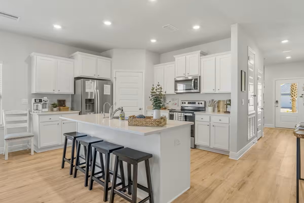 ⭐️Luxuriöses Strandhaus mit 4 Schlafzimmern ⭐️ Platz für 12 Personen in Windmark Beach ⭐️ Beheizter Pool 1. Okt. bis 30. Apr. ⭐️ 6-Sitzer Golfwagen ⭐️ Lebensmittelservice ⭐️Haustierfreundlich Du bist nur wenige Schritte vom luxuriösen Gemeinschaftspool entfernt, wo du dich mit Blick auf den Golf von Mexiko entspannen kannst. Du kannst in wenigen Minuten vom Haus zum Strand gehen, um im warmen Wasser des Golfs zu schwimmen oder in der Sonne zu entspannen. Mach eine Golfwagenfahrt zum nahegelegenen Dorfzentrum, um einen Happen zu essen. Beende deinen Tag entspannt in den abgeschirmten Veranden oder im Außenwohnbereich mit Feuerstelle.