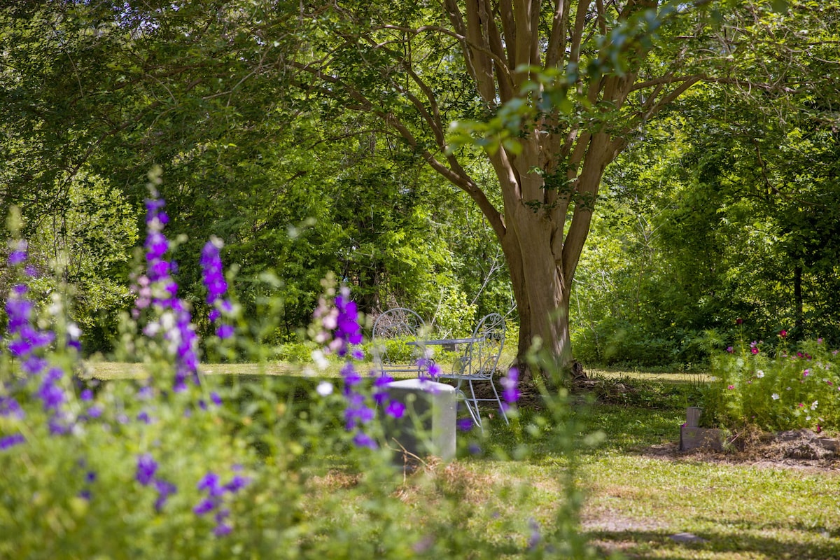A popular, family-run flower farm (closed in summer months) now offers its guest house for a peaceful, cozy, quiet stay year round in a unique and remote setting. Come learn why the "slow travel" and "forest bathing" trends are on the rise! Here in a clearing in a woodsy patch of land near where flowers are cultivated and harvested, enjoy a fully equipped cottage for two. Full kitchen, private bath, laundry room and cozy spaces await!