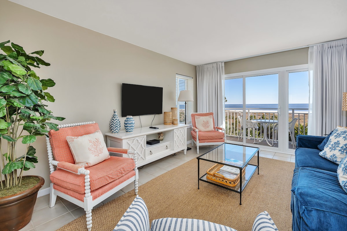 Willkommen in deinem luxuriösen Küstenurlaub! Unsere neu renovierte Eigentumswohnung befindet sich in der exklusiven, mit einer Schranke versehenen Beach Club-Wohnanlage auf SSI und bietet Gästen Zugang zu *privaten* Stränden, einem Pool am Meer und vielem mehr. Unsere Wohnung ist komplett mit allem ausgestattet, was du für einen angenehmen Aufenthalt benötigst. Die Einheit 315 befindet sich im 3. Stock und bietet dieser Wohnung einen schönen Blick auf den Strand, den Innenhof und den Pool. Wir sind nur einen kurzen Spaziergang von Restaurants, Geschäften und eine kurze Radtour von so viel mehr entfernt!