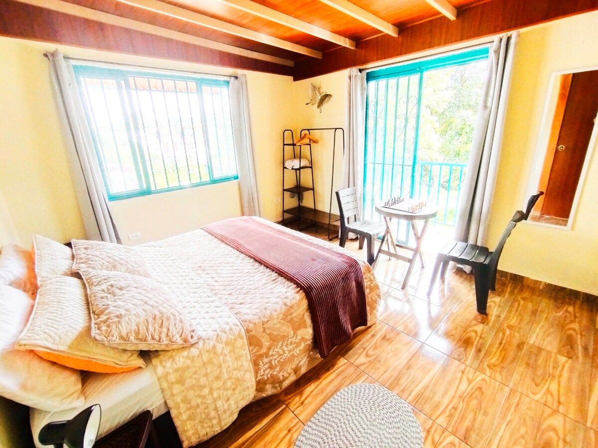 Willkommen in unserer ruhigen, zentral gelegenen, neuen Wohnung nur vier Blocks vom Stadtplatz von Salento entfernt. Genieße einfachen Zugang zu Quant-Läden, lebhaften Bars, Restaurants und Transport zum Valle de Cocora. Wandere zwischen hoch aufragenden Wachspalmen, schneebedeckten Vulkanen und vielfältigen Wildtieren. Erkunde die renommierte Kaffeekultur der Region mit Bauernhof-Touren, um mehr über die Kunst des Anbaus und Röstens einiger der besten Bohnen der Welt zu erfahren. Perfekt für Abenteuer, Entspannung und das Eintauchen in das Kaffeerbe von Salento.