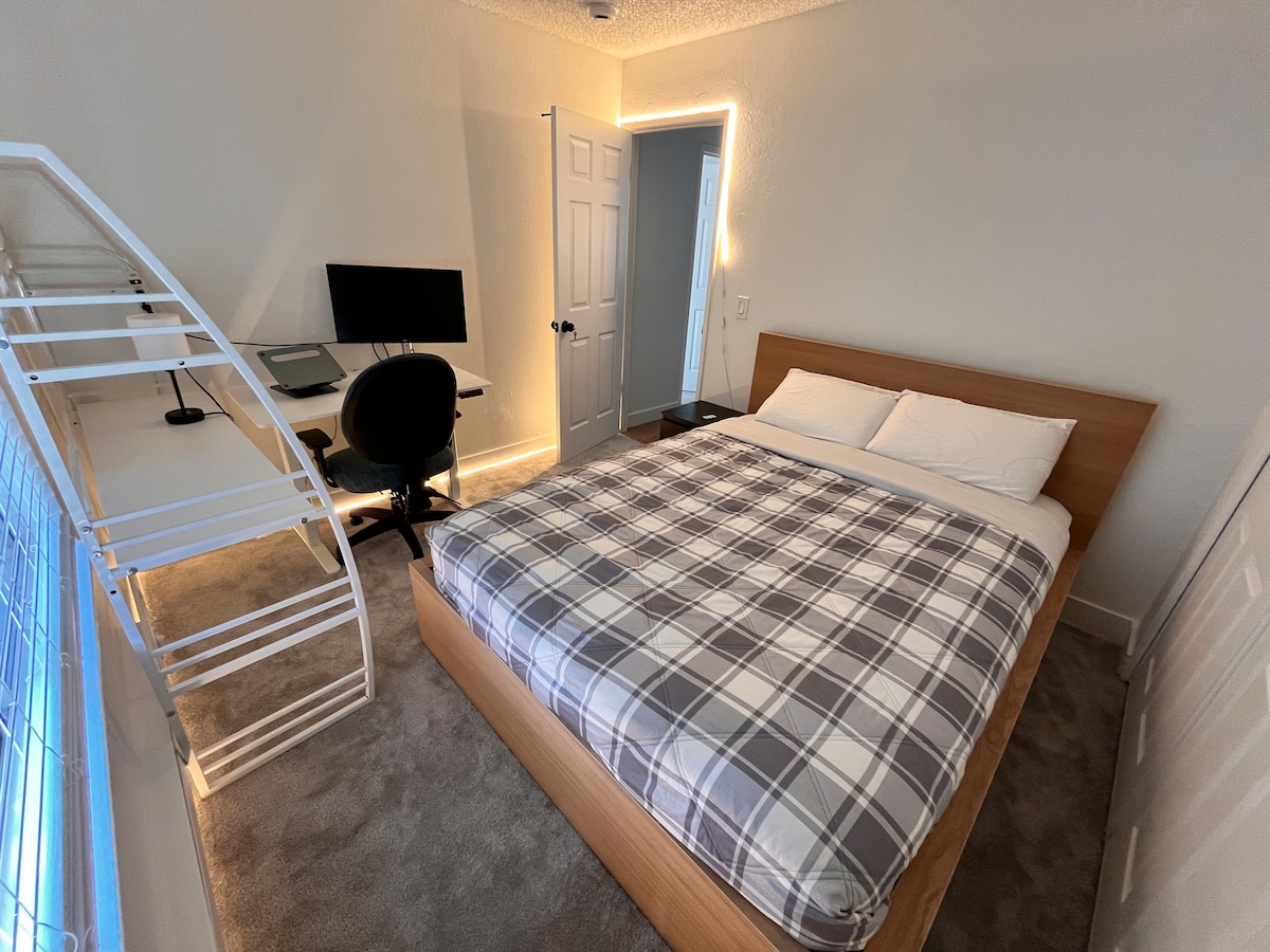 Komfortabel & gemütlich - wir haben alles, was man für einen erholsamen Aufenthalt braucht. Zentral gelegen - nur wenige Minuten von der Santa Clara University, den Technologieunternehmen und dem Flughafen San Jose entfernt . Genieße ein stilvolles Erlebnis! Minuten vom World Headquarters of ServiceNow (4 Min.), NVIDIA (4 Min.), Adobe (10 Min.), eBay (11 Min.), Apple (14 Min.), Netflix (14 Min.) Santa Clara University (3 Min.), Pay Pal Park (4 Min.), Flughafen SJ (7 Min.), Great America (10 Min.), 40 Min. zum Strand von Santa Cruz und 10 Minuten zur Innenstadt von San Jose