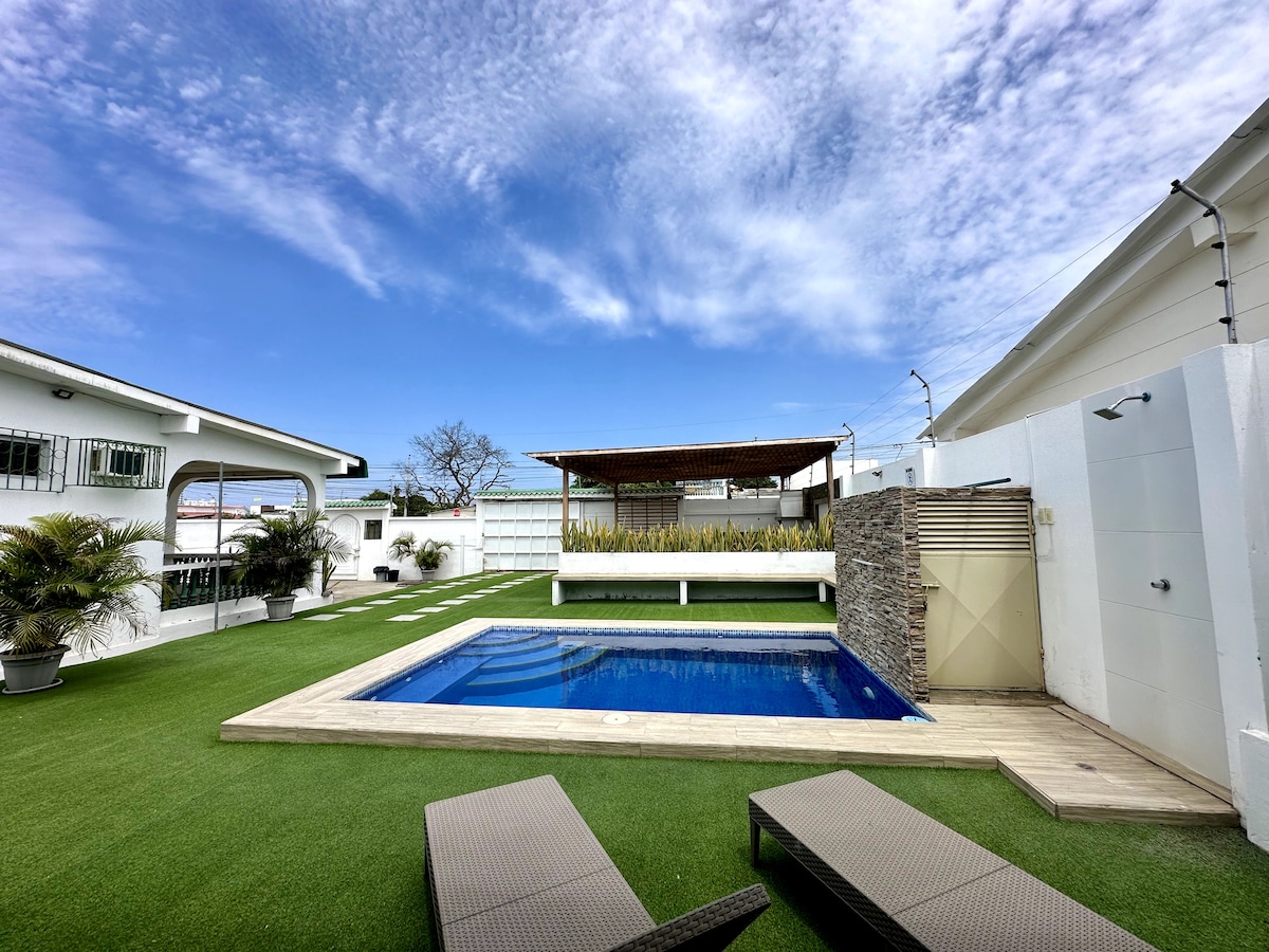 SCHÖNES HAUS MIT GROSSER TERRASSE - VOLLE AUSSTATTUNG (750 m2): - Es verfügt über 6 Schlafzimmer mit TV, Klimaanlage und ein Badezimmer mit heißem Wasser. - Voll ausgestattete Teamküche. - Internes Esszimmer und externes Esszimmer mit Grill und TV. - Große Terrasse mit 5 internen Parkplätzen und einem Arbeitszimmer. Ausgezeichnete Lage und Sicherheit. - Voller Natur und Komfort. Haustiere sind willkommen. - Der Strand ist nur 7 Gehminuten und eine 1-minütige Autofahrt entfernt. Der Malecón de Salinas befindet sich eine 3-minütige Autofahrt und einen 12-minütigen Spaziergang entfernt.