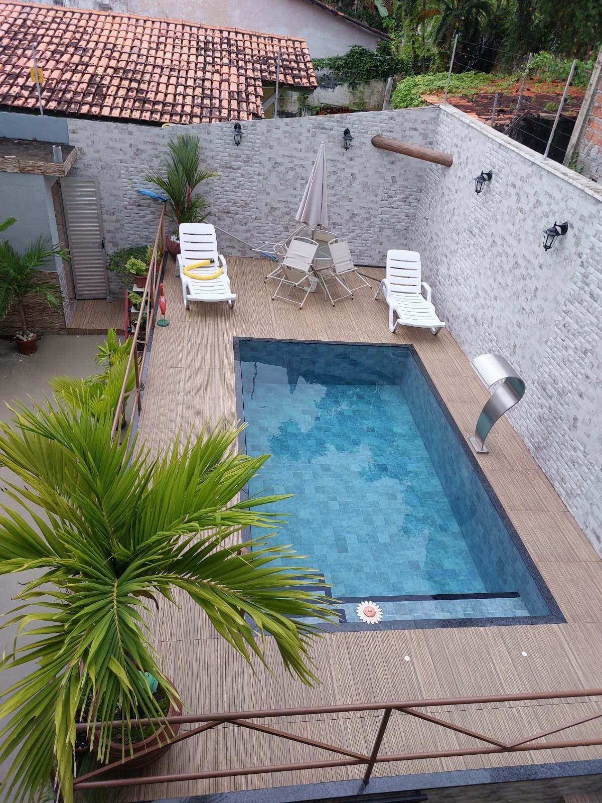 Im Rancho Odara haben wir 3 Suiten und 1 Zwischengeschoss (offener Raum, keine Türen, keine Klimaanlage und kein Fernseher), das sich im obersten Stockwerk des Chalets befindet, mit einem Balkon, 1 Doppelbett, 1 Kingsize-Bett, 1 Doppelmatratze auf dem Boden und einem Ventilator. 2 en-Suiten mit 1 Doppelbett und 2 Einzelbetten, mit Klimaanlage, TV, Minibar und elektrischer Dusche. 1 Suite mit 1 Doppelbett und 1 Einzelbett, mit Klimaanlage und TV. Voll ausgestattete Küche, Pool und Grill. Salinopolis/Salinas/Strand