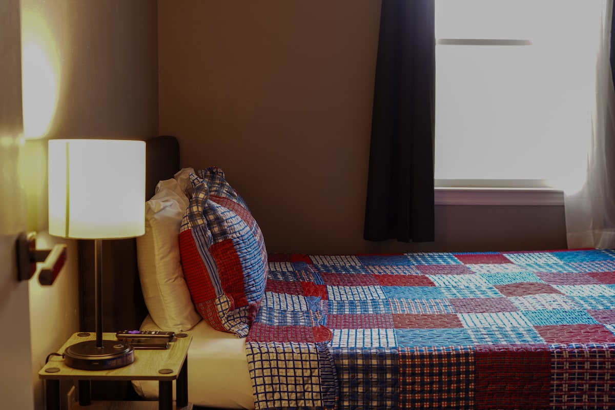 Die Den befindet sich im Herzen von Greer, versteckt auf einer Nebenstraße, aber nur eine Minute vom Wade Hampton Blvd. entfernt. In der Nähe von unzähligen Restaurants, Geschäften und Cafés! Die neu renovierte Unterkunft The Den ist eine von drei Einheiten in einem Triplex von Airbnbs. Sie verfügt über ein extra großes Schlafzimmer, eine voll ausgestattete Küche und Smart-TVs im Wohn- und Schlafzimmer. Du hast Zugang zu einer gemeinsam genutzten Waschküche vor Ort. Perfekt für jeden schnellen oder langen Aufenthalt. Wir freuen uns schon sehr darauf, dich als Gast begrüßen zu dürfen!