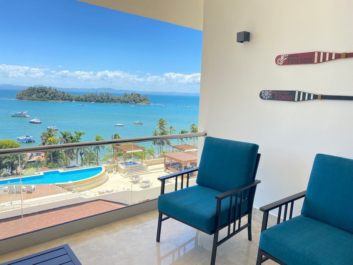 Mooi appartement met 1 slaapkamer en 1 badkamer, terras met uitzicht op zee en 2 privéstranden, in een beveiligde afgesloten ruimte, 24 uur per dag beveiligd. Een eigen parkeerplaats is beschikbaar voor het complex van uw appartement en is voorzien van het nummer van het appartement. Er is een tv met videorecorderfunctie, brand tv en wifi. Vanaf het balkon zie je het beroemde eiland Cayo Levantado. Vanaf hier kunt u ook de voorbijtrekkende walvissen observeren.