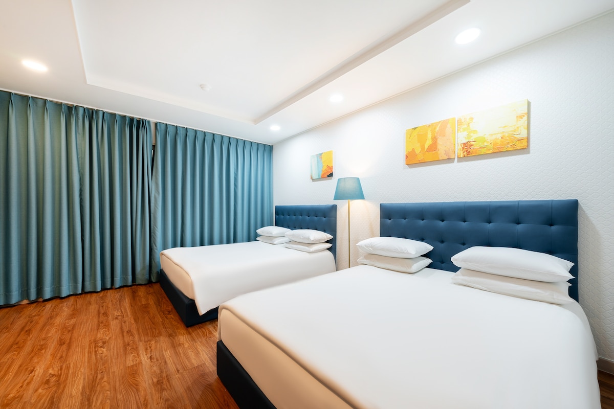 Wir bieten eine komfortable Erholung in einem geräumigen Raum mit einem Doppelbett und einem Einzelbett, damit du dich mit deiner Familie, Liebhabern und Freunden entspannen kannst.