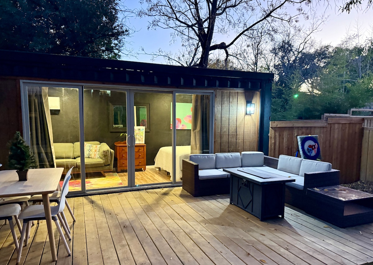 Erlebe die ruhige Privatsphäre, die normalerweise auf dem Land zu finden ist, nur wenige Minuten vom Riverwalk entfernt. Dieses winzige Containerhaus (300 Quadratfuß) hat alles, was du brauchst, sowie einen Hof für deine vierbeinigen Familienmitglieder. Gehe zu vielen von San Antonios Lieblingsrestaurants, sowie zu St. Mary's Strip & Trinity U, weniger als 5 Minuten Pendeln zur Pearl! Das Containerhaus öffnet sich zu einem privaten Hof, in dem du die Terrasse genießen, den Grill anzünden und dich an der Feuerstelle entspannen kannst.
