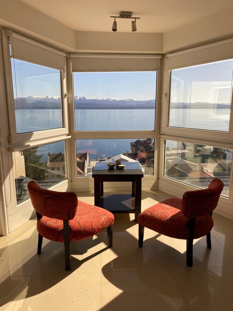 Moderno y luminoso departamento con vistas increíbles al lago y la cordillera. Ofrece un amplio living comedor con ventanales, cocina totalmente equipada, habitación principal con TV, baño completo y toilette. Decorado en tonos cálidos y naturales, brinda confort, estilo y una experiencia única en el corazón de Bariloche.