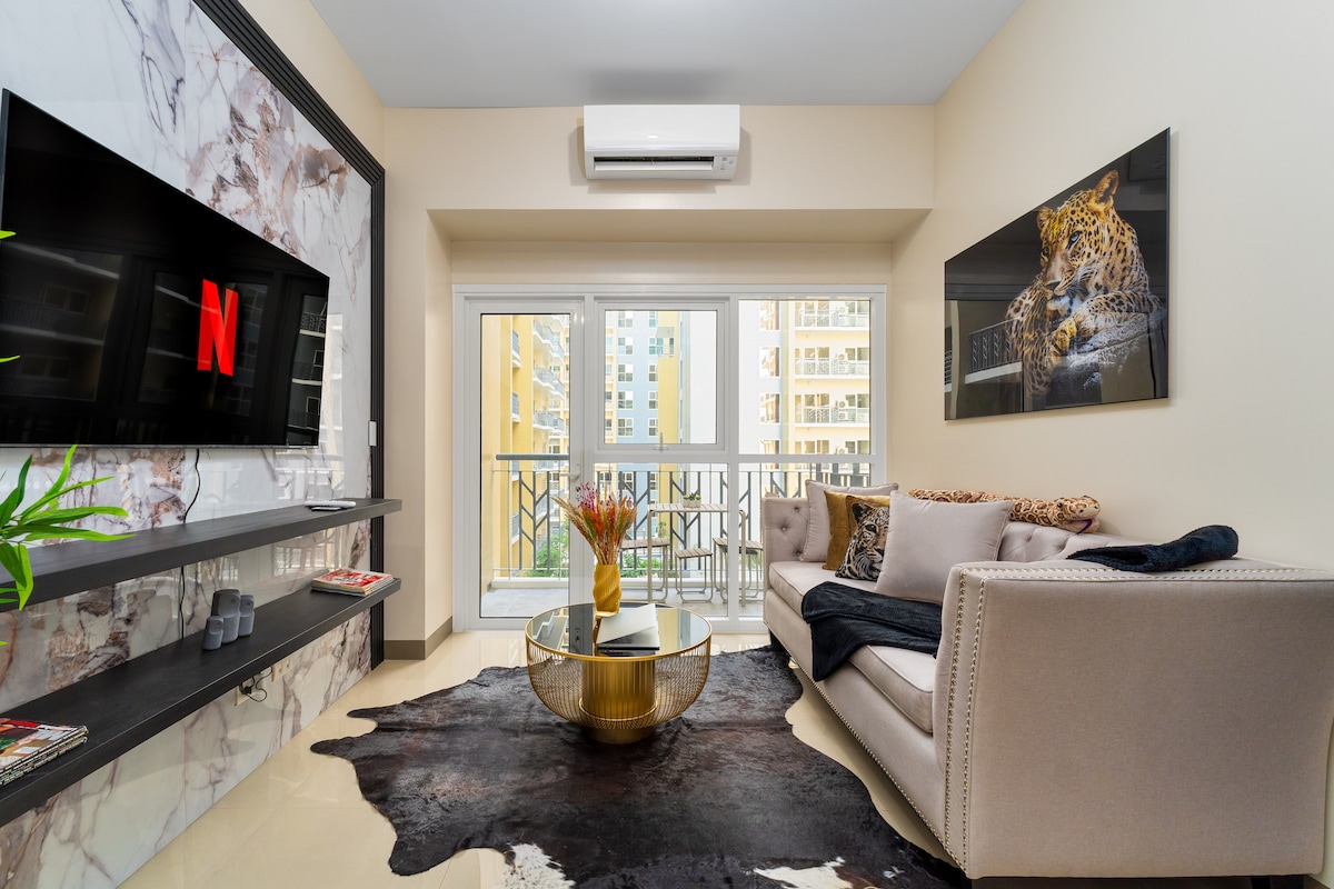 Die Unterkunft ist eine 38 qm große Einzimmerwohnung mit Balkon und bietet einen atemberaubenden 90-Grad-Blick auf Alabang, Skyway und den Poolbereich und den üppigen Garten des Gebäudes – eine Balance aus urbanen und grünen Räumen. Ideal für einen Aufenthalt, als Alternative für Arbeiten von zu Hause aus oder für Familien, die sich entspannen und die Zeit miteinander genießen möchten. Es ist eine Einheit mit komplizierten Details – geräumig im Vergleich zu einem Hotelzimmer zum gleichen Preis. Unser eigener Tiefgaragenparkplatz steht Gästen ohne Aufpreis zur Verfügung.